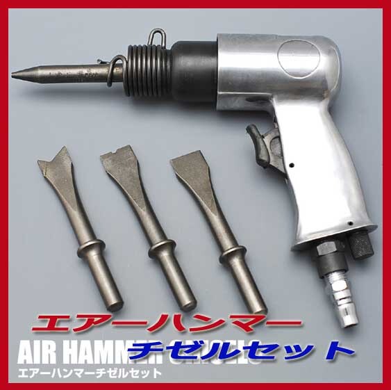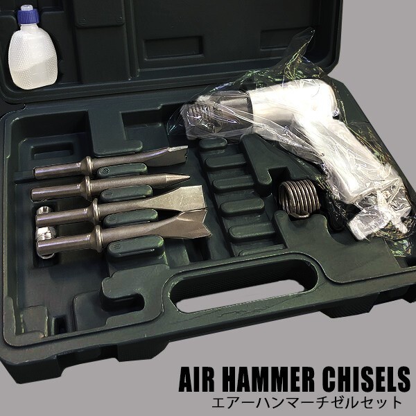 ※エアーを使用した強力ハンマー!!◇エアハンマーチゼルセット ※板金作業やはつり作業に大活躍☆新品です。専用ケース付き。 |