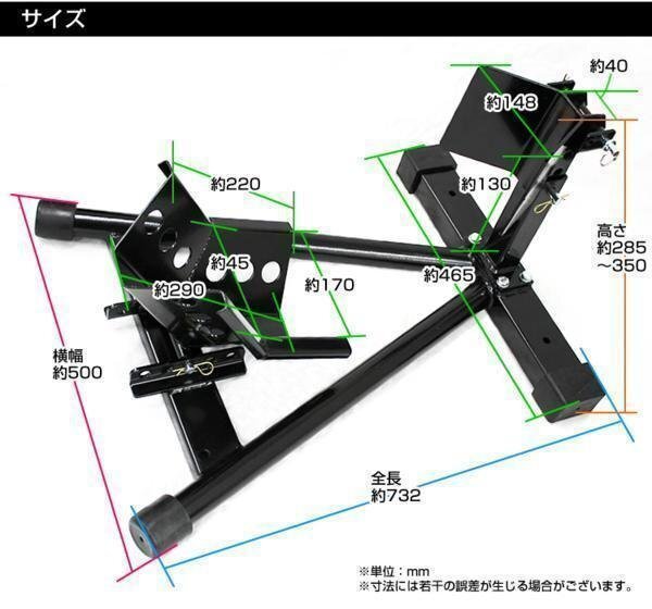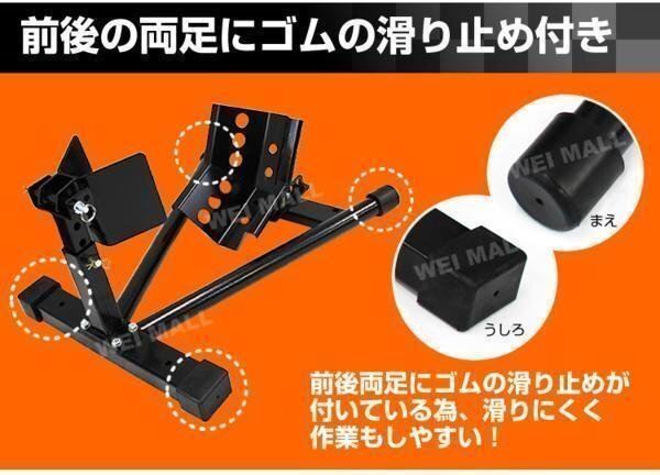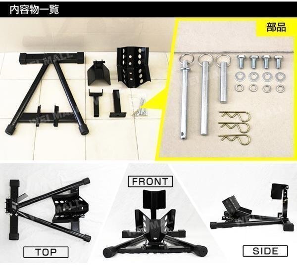 | フロントタイヤで支えるタイプのバイクスタンドです。 自宅でのメンテナンスや店舗内の車両展示などもオススメです!! | ◇入荷状況により細かな仕様変更がございます。その場合、写真ではなく現物が重視されますので神経質な方は入札をご遠慮ください。 |