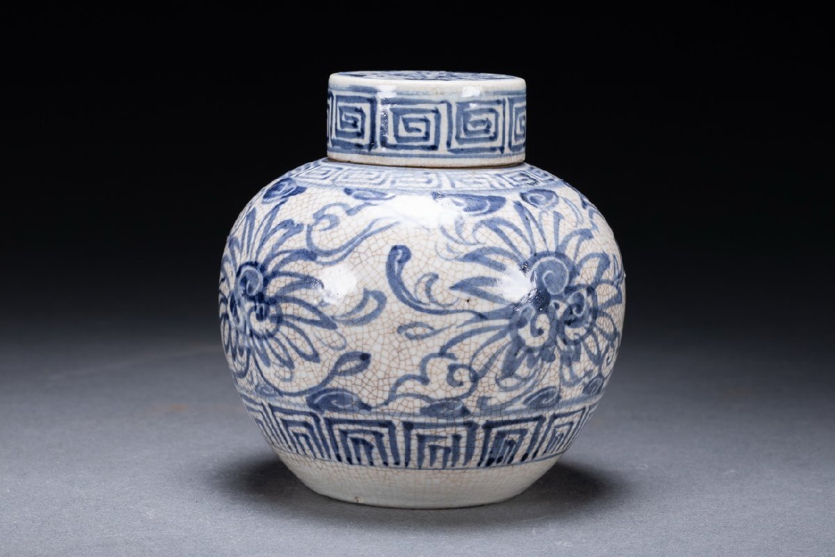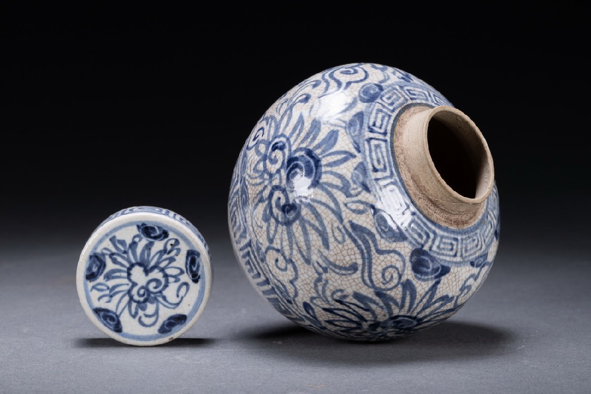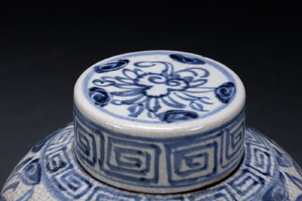 【雲錦】某有名オークション購入 時代物 一方堂 染付 染付茶葉入り 茶壷 共箱 古置物 古美術 時代コレクション7L10-115S1
