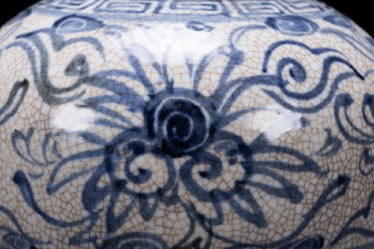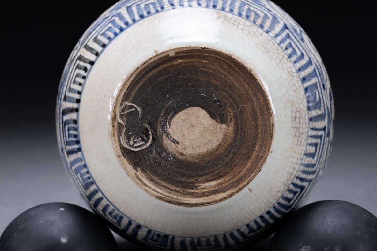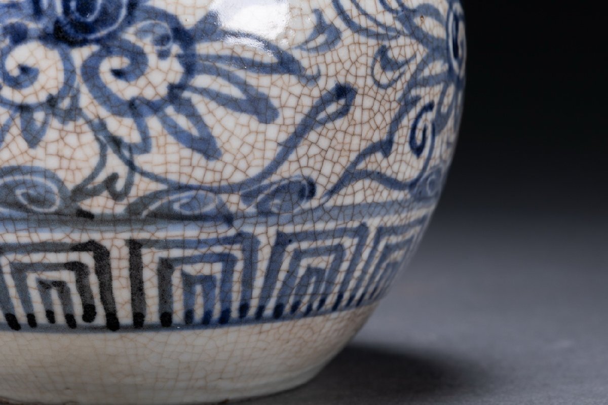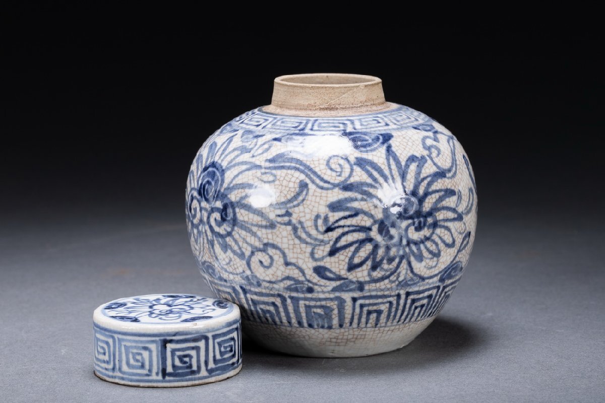 【雲錦】某有名オークション購入 時代物 一方堂 染付 染付茶葉入り 茶壷 共箱 古置物 古美術 時代コレクション7L10-115S1