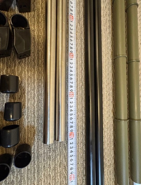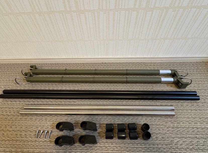| 商品説明 | 車のキャリアに最適なパイプとインテリアバーのセットです。 ●車売却のため取り外しました。 ●禁煙、ペット無しで半年間(2000Km)程使用していました。 ●1台分のセットですが、パイプのみ2セットありますので 状況に応じ取り付けてください。 ※傷などはありますが使用上問題ありません。 ※説明書なしのためYouTubeなどを参考に取り付けてください。 ※車種によってはサイドバーアシストグリップ部ホルダー 取付部品を別途用意する必要があります。 ※2台取付には サイドバーアシストグリップ部ホルダーなど別途購入が必要です。 ~お渡しするもの~ 【インテリアバー】 ・ナフコ インテリアバー NE2 ×2本 ■カラー:オリーブ ■サイズ:幅905~1610×奥行60×高さ60mm 【25φパイプ】 ・アルミパイプ 黒 100㎝ ×2本 ・スチールパイプ 70㎝ ×2本 ・25㎜パイプキャップ ×8個 ※アルミパイプ黒にキャップを付けると緩いためビニールテープを アルミパイプに巻くなど補強が必要だと思います。 【サイドバーアシストグリップ部ホルダー】 ・ZSP28 ×4個 ・M6×30㎜ねじ ×4本 | |