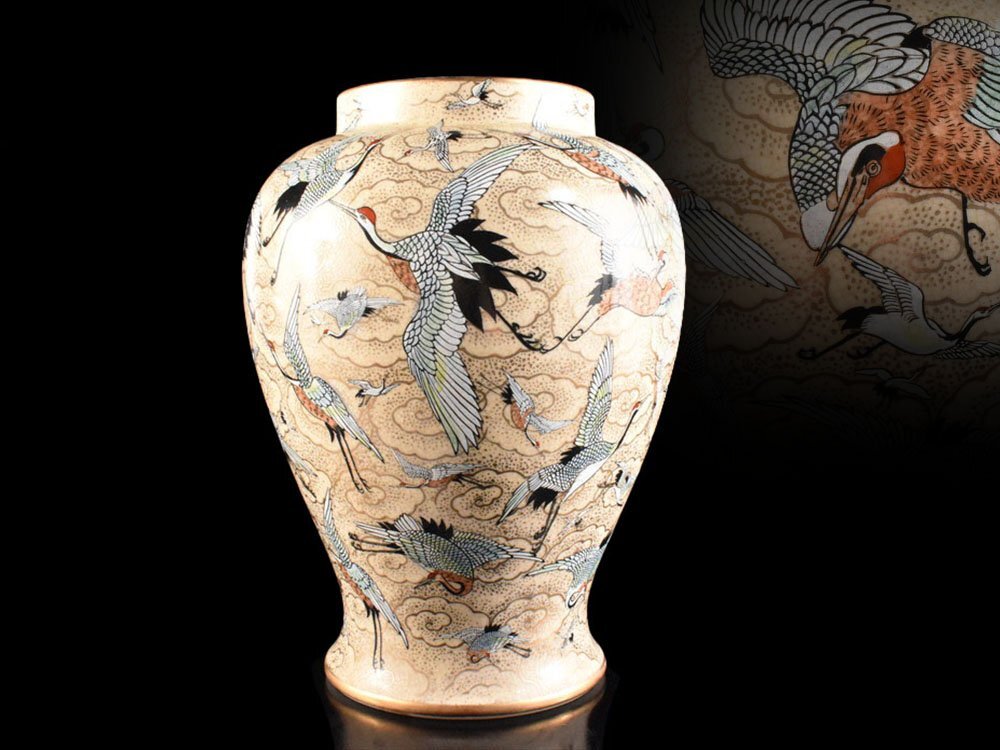 | 商品名 | 【雲】某コレクター買取品 豪華絢爛 薩摩 金襴手群鶴雲細密絵付大花瓶 壷 高さ34cm 古美術品(花器花入壺)CY2236 DTshnvls |