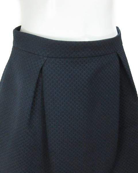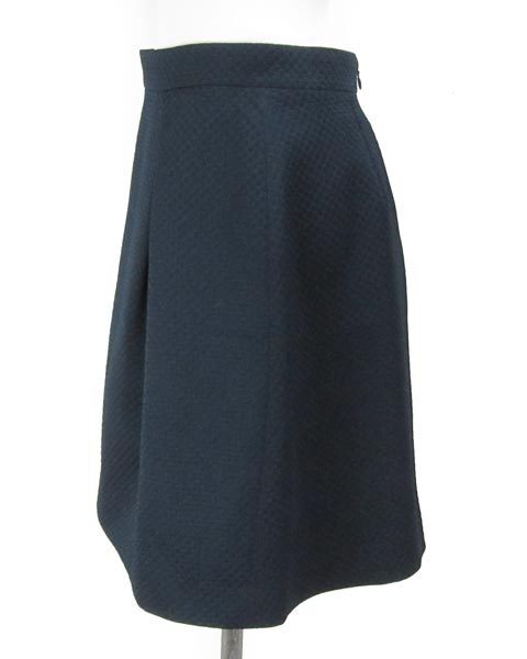 | シックな紺の上品なスカート。きちんとかんがあり、ビジネスシーンからオフの日までお使い頂けます。地模様の入ったお生地で、しわになりにくいです。 |