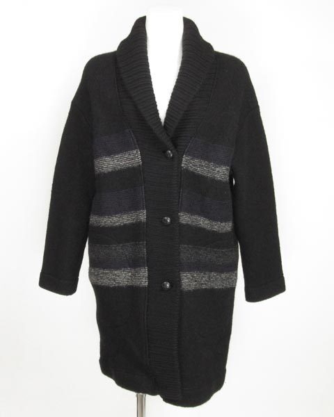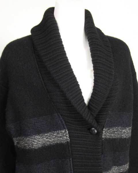 | 暖かロングニットジャケット♪しっかりとした素材で、ウールの暖か味を感じるアイテムです。コロンとした大きめの釦とショールカラーがポイントです。お尻まで隠してくれる長めの丈もうれしいですね。暖かく、アウターとして大活躍間違いなしの一枚ですよ。 |