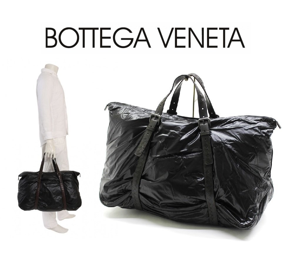 35万新品◆ボッテガヴェネタ◆ナイロン×イントレディテールレザーハンドルボストンバッグ『スピンネーカー』黒ブラック
