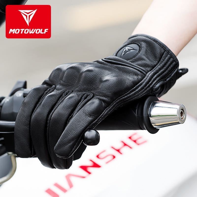 MOTOWOLF バイクグローブ サイクリンググローブ 手袋 レザー 新品送料無料 山羊革 スマホ操作対応 Lサイズ