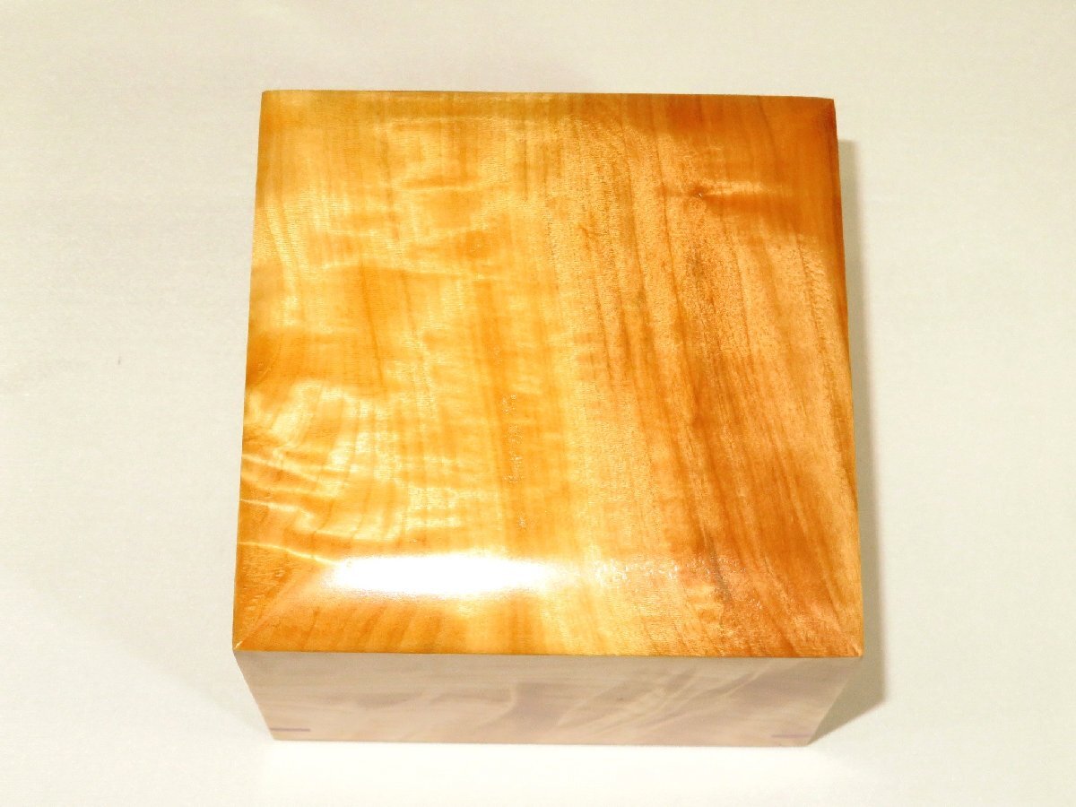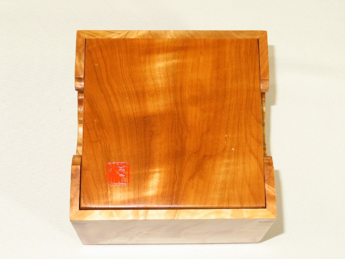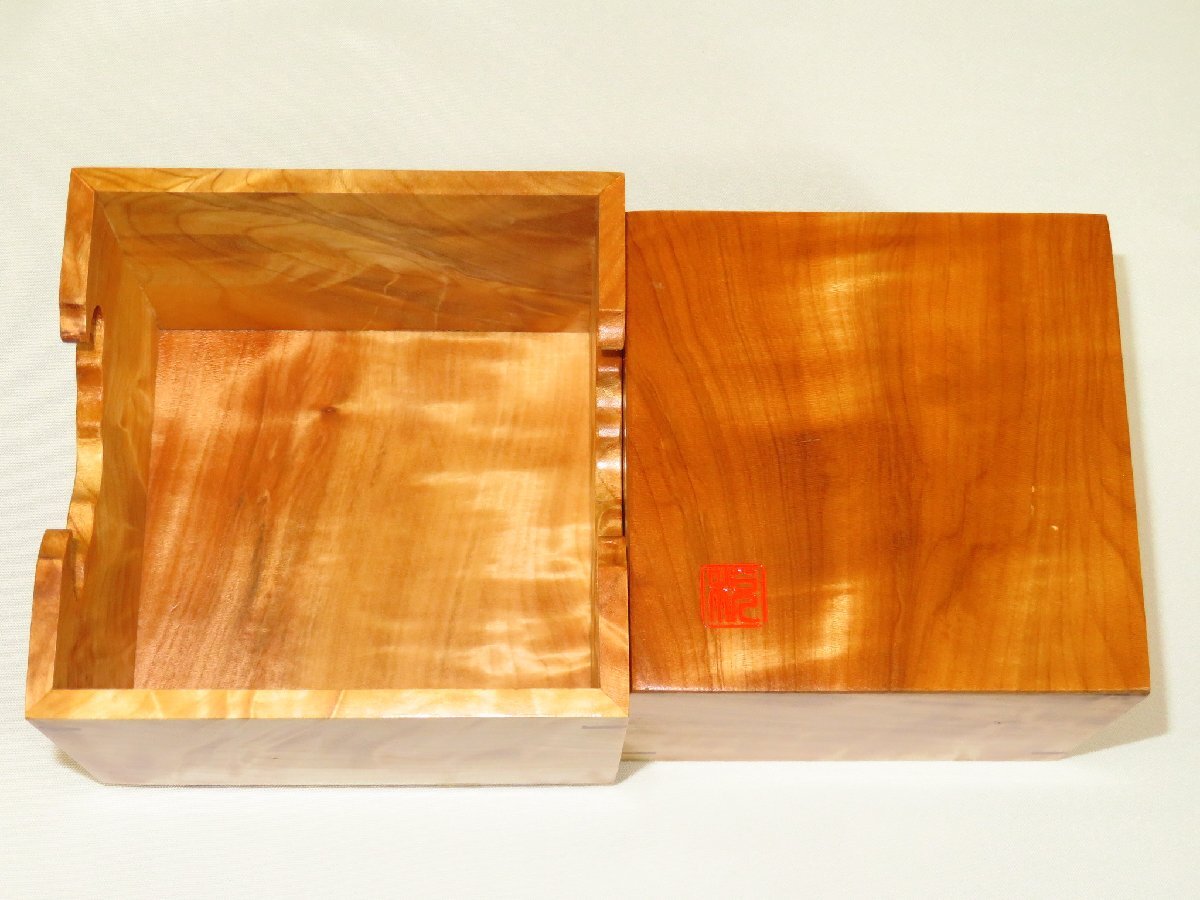 1000円スタート▲在銘/税所健一作栃虎目杢将棋駒箱▲新品/紙箱付