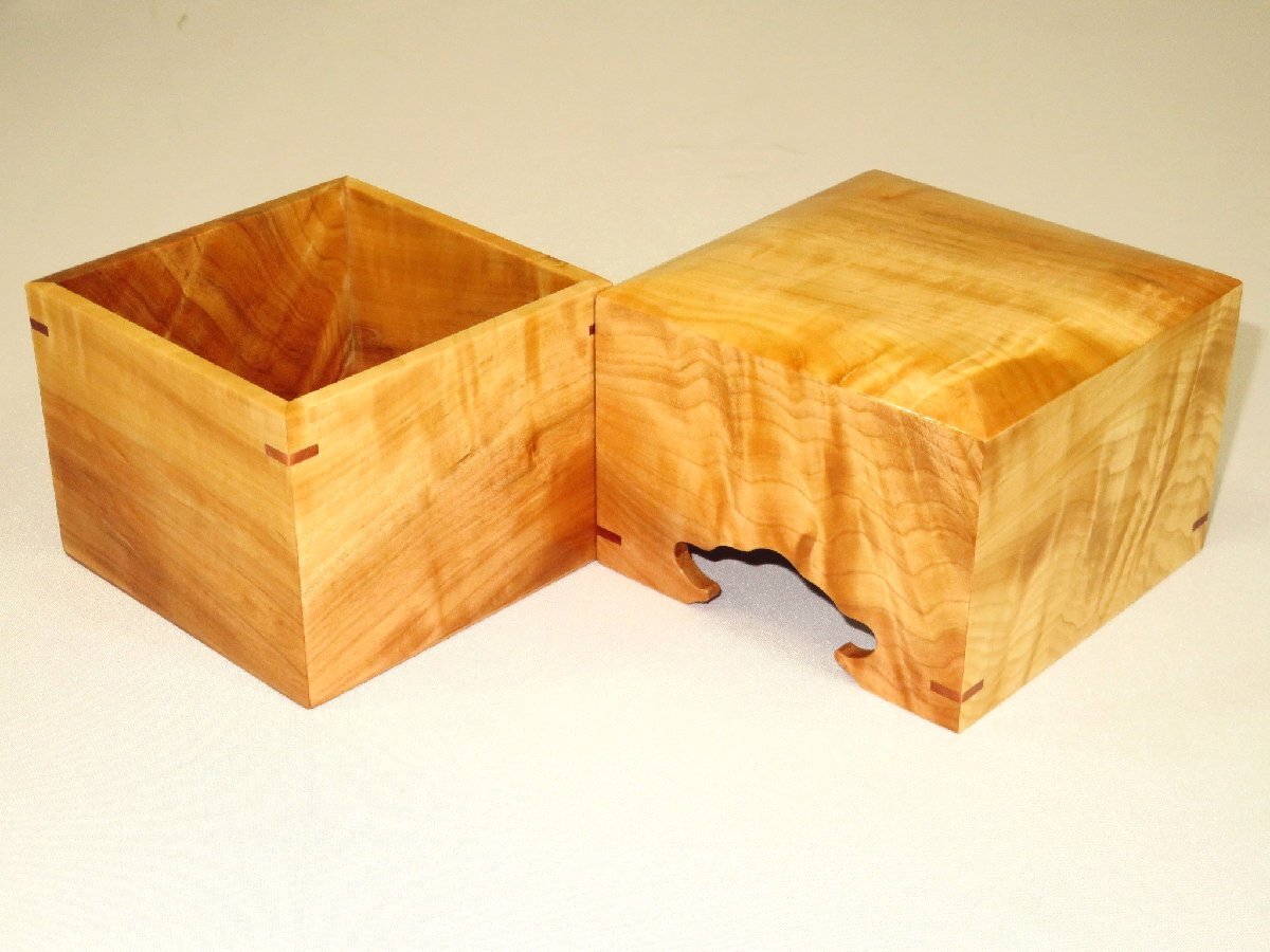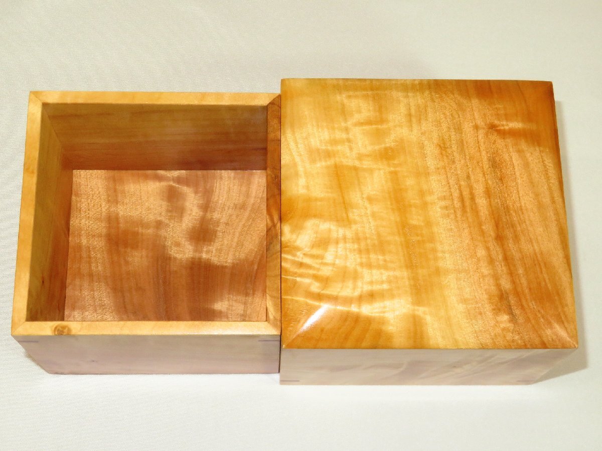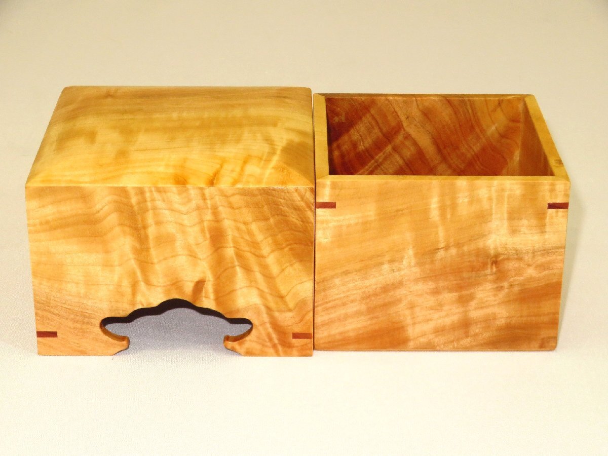 1000円スタート▲在銘/税所健一作栃虎目杢将棋駒箱▲新品/紙箱付