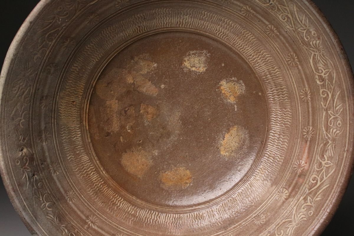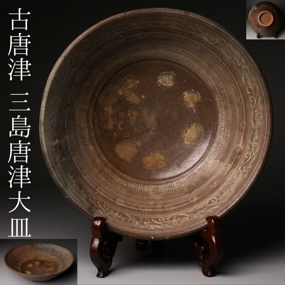 [.E]25.11 25110910A* * * 商品詳細 * * * ここでしか出逢うことのできない唯一の美をご紹介させて頂きます。 江戸期の古唐津 三島唐津大皿のご紹介です。 素朴ながらも力強い土味に、三島手ならではの彫文が美しく映える一品。 使い込むほどに深まる風合いは、時代を経た味わいと温もりを感じさせ、 眺めているだけでも趣を楽しめる、唐津焼の魅力が詰まった逸品です。 ■サイズ/横23㎝×高9㎝ ■状態/経年による スレ、小傷、汚れ、窯被がございます。 ※写真にてご確認、ご了承の上ご入札下さい。 ※皿立ては付属致しません。