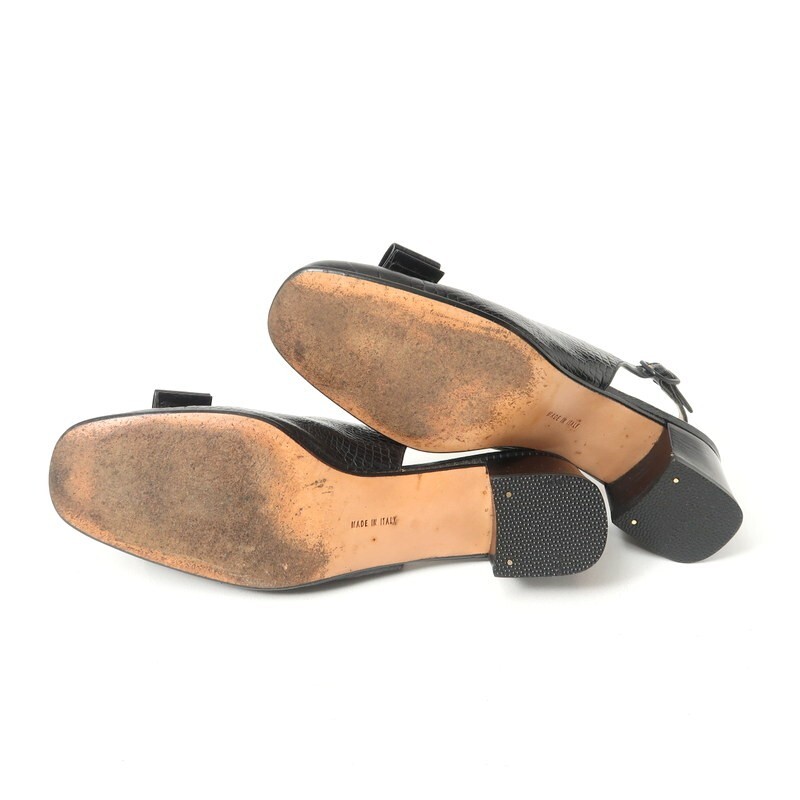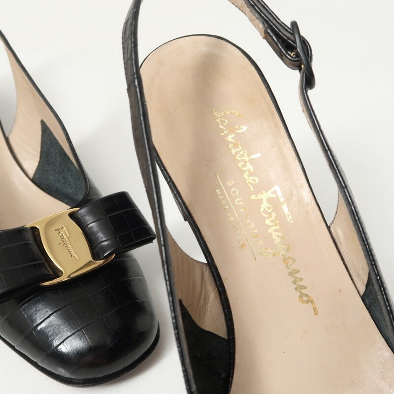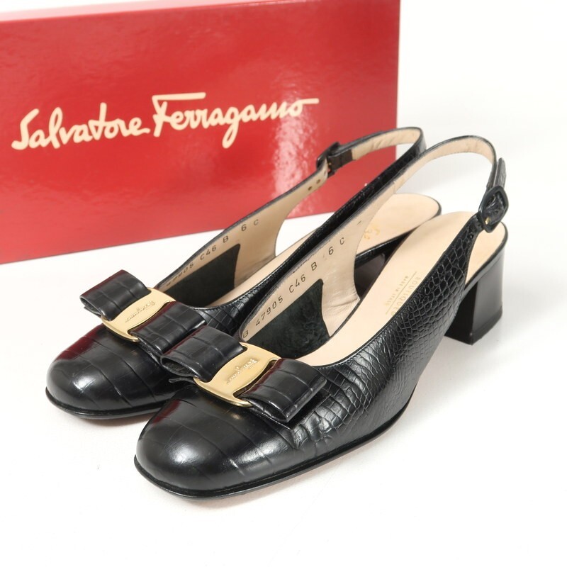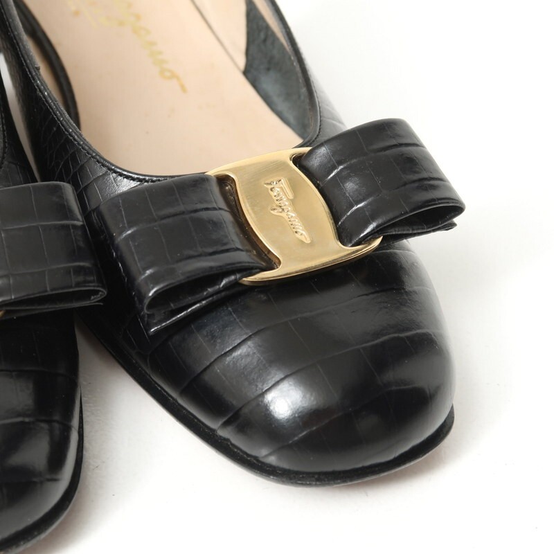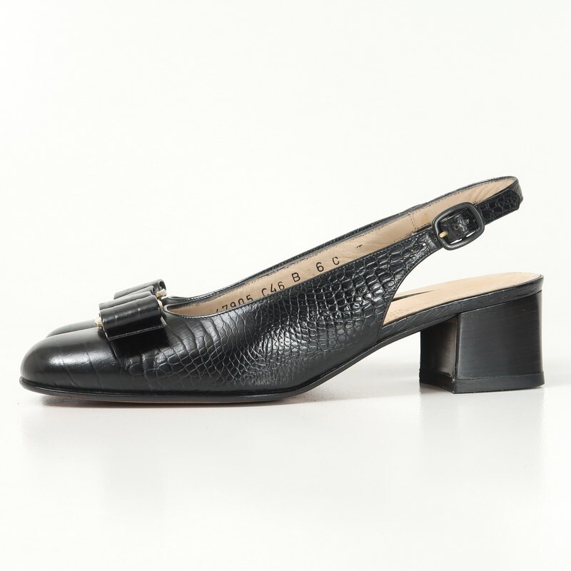 | GS5333*イタリア製 サルヴァトーレフェラガモ 6C(23cm相当) ヴァラリボン クロコ型押しレザー スリングバックミュール パンプス ブラック | |||