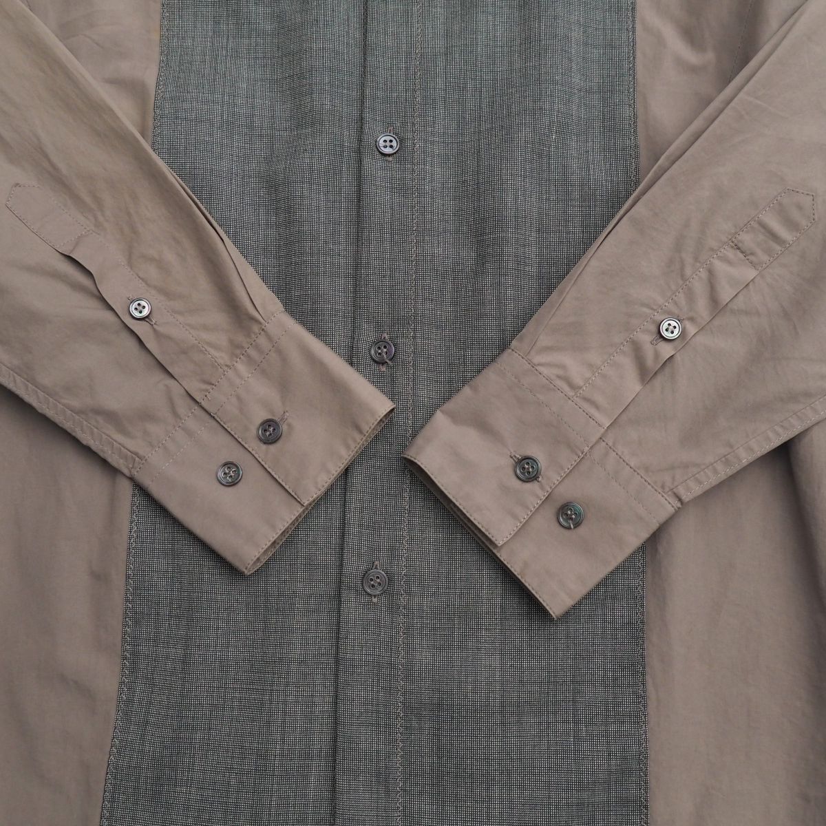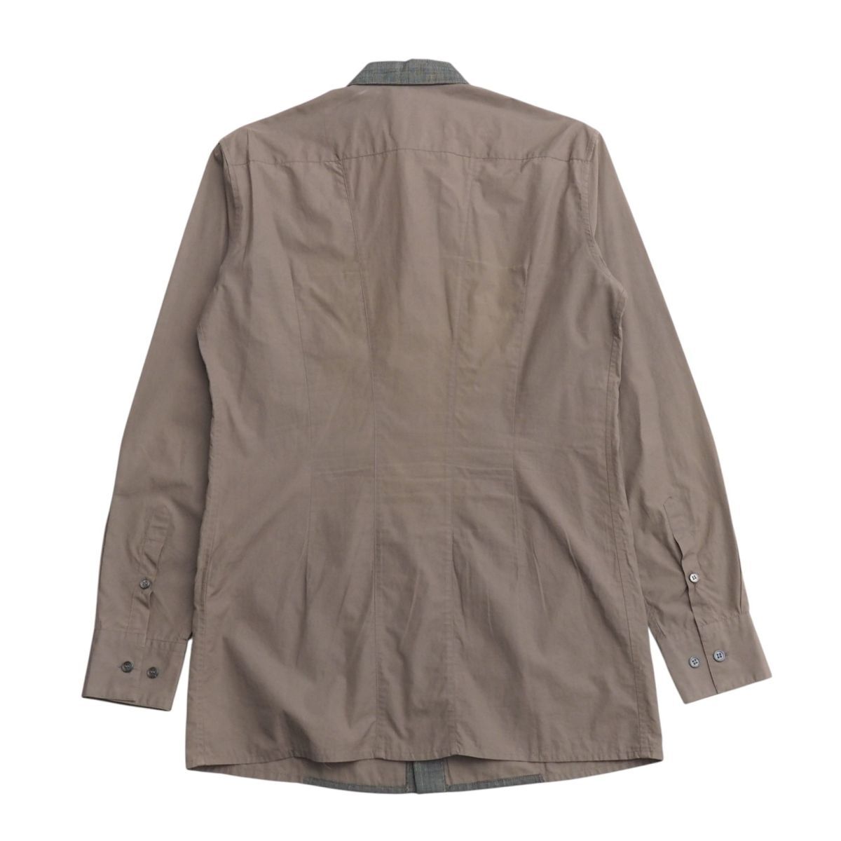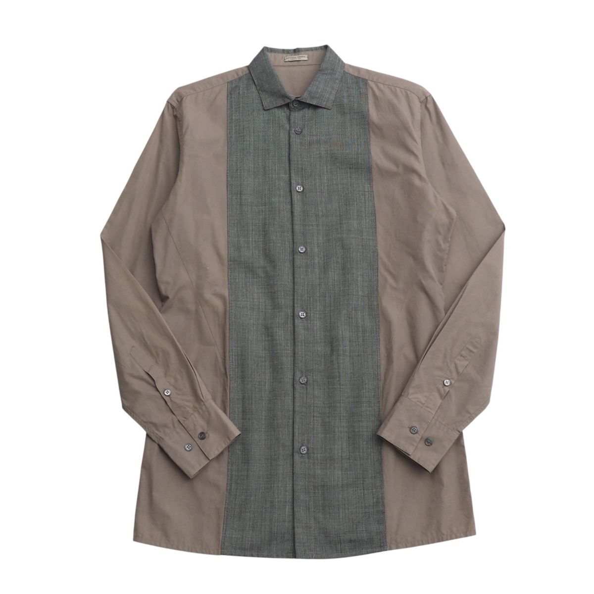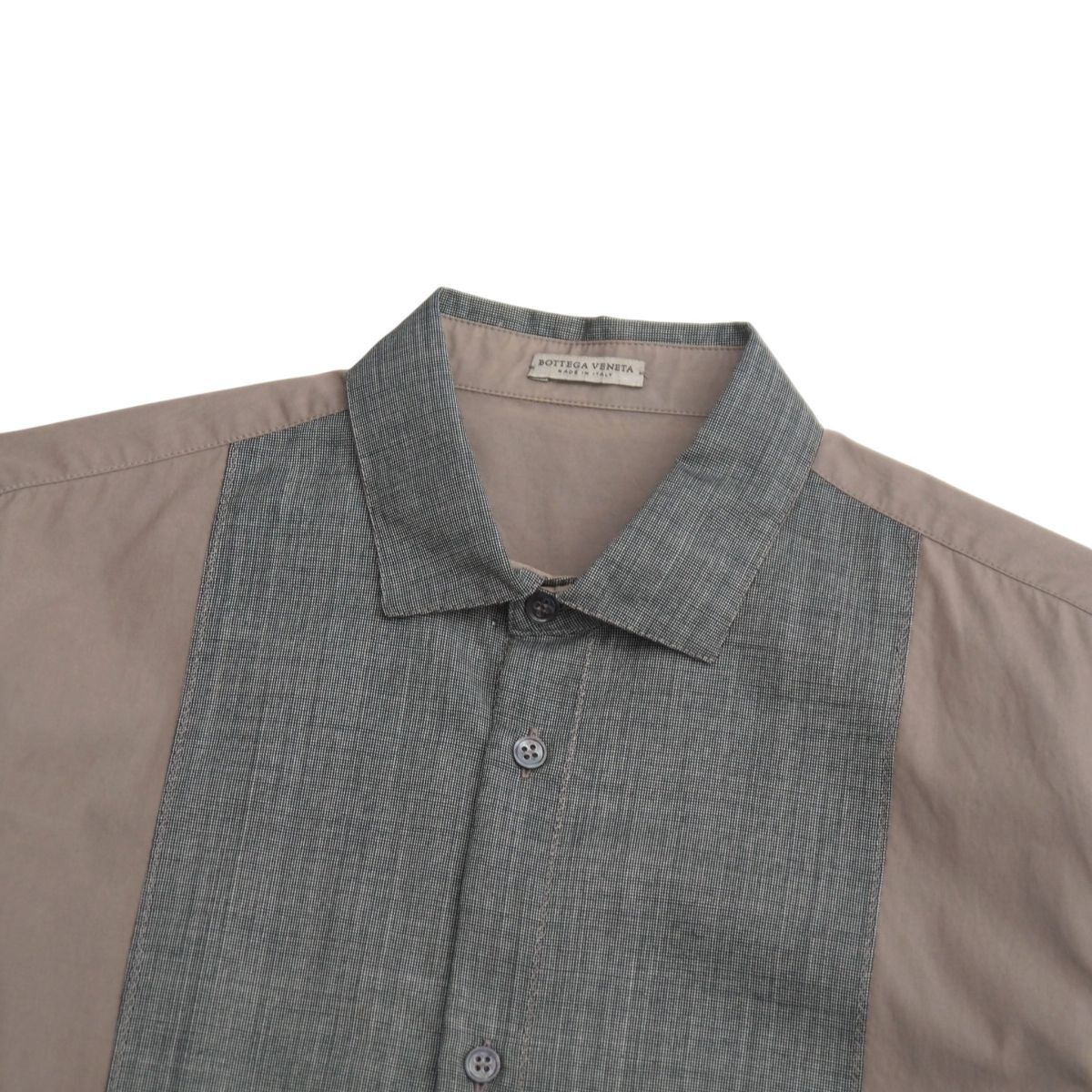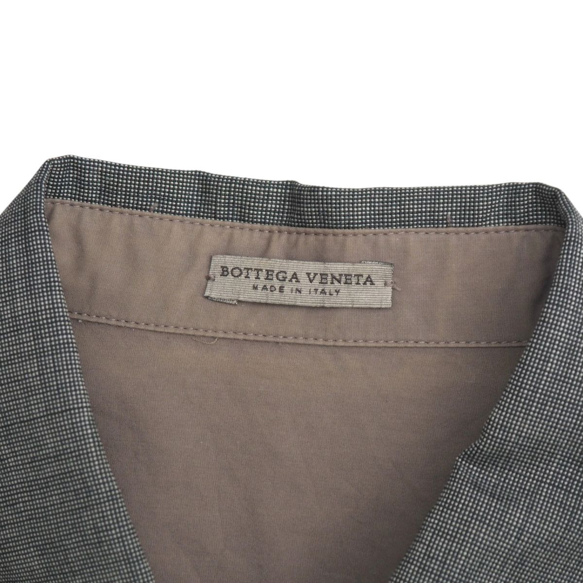 | MI3449+イタリア製*ボッテガヴェネタ/BOTTEGA VENETA*メンズ38 15*長袖シャツ*異素材切替*シェルボタン*ウール/コットン*ブラウン系/グレー系 | |||