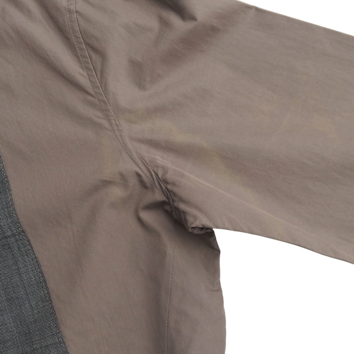 【コンディション詳細】 首周り、裾、袖口にアタリ、写真のように脇辺り、フロント中央右、上腕部分、袖先付近などにうっすらと変色、フロント中央右、袖の所々に薄い小ジミ、袖口に薄汚れがございますものの、ほか支障になるようなダメージなどはございません。 |