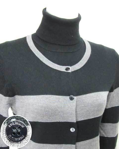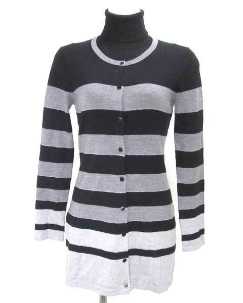 | 定番色のボーダーは便利なアイテム。ロング丈のカーディガンと半袖タートルニットのセットです。別々でもお使いいただけますので着まわしがききコーディネートの幅が広がります。太ボーダーにシルバーラメのラインがアクセントに。スキニーやレギパンなどと相性がいいです。 |