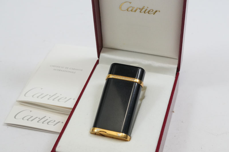 【L966】Cartier カルティエ ライター オーバル ブラック×ゴールドカラー 喫煙グッズ 喫煙具 ケース付