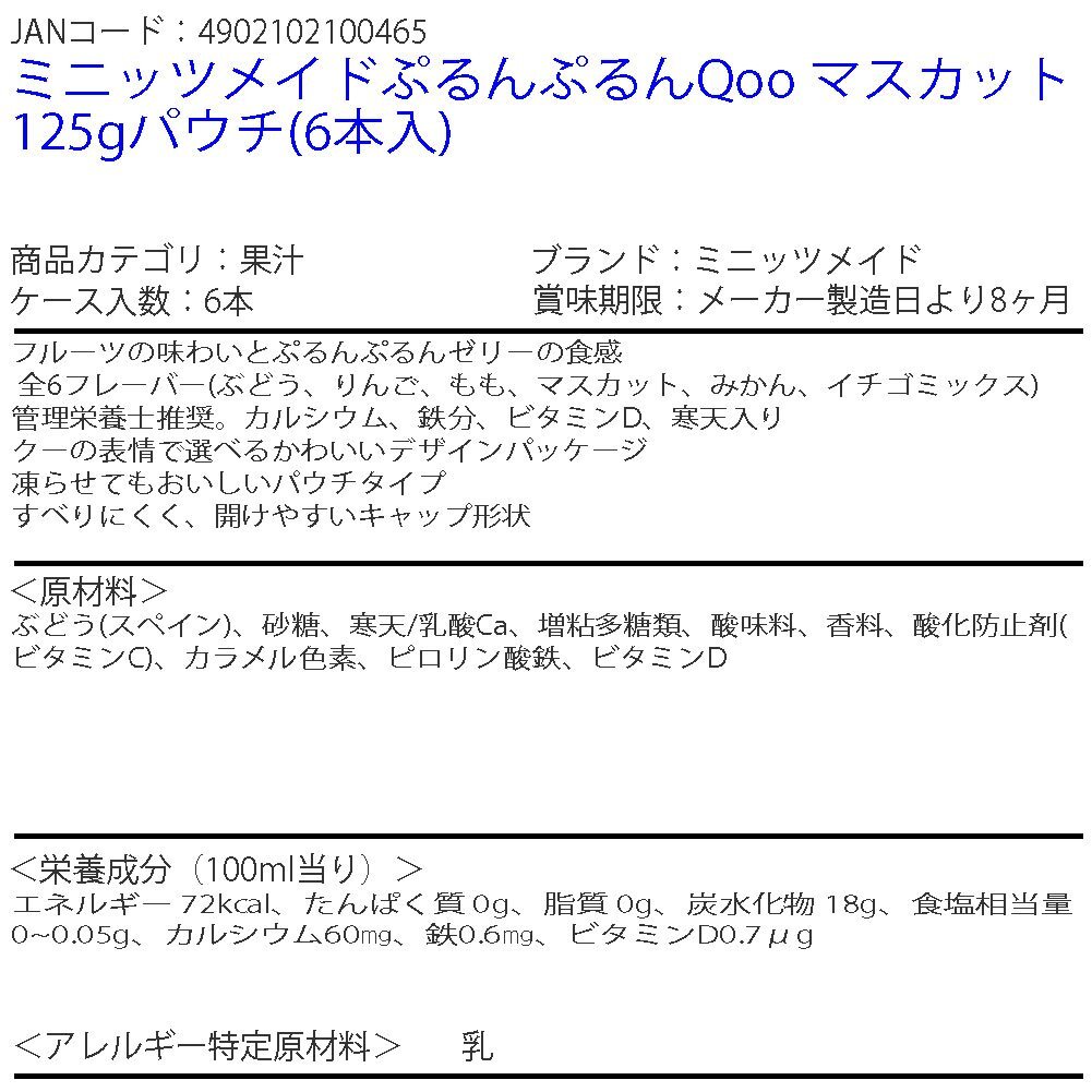| 商品名 | ミニッツメイドぷるんぷるんQoo マスカット 125gパウチ(6本入) | |