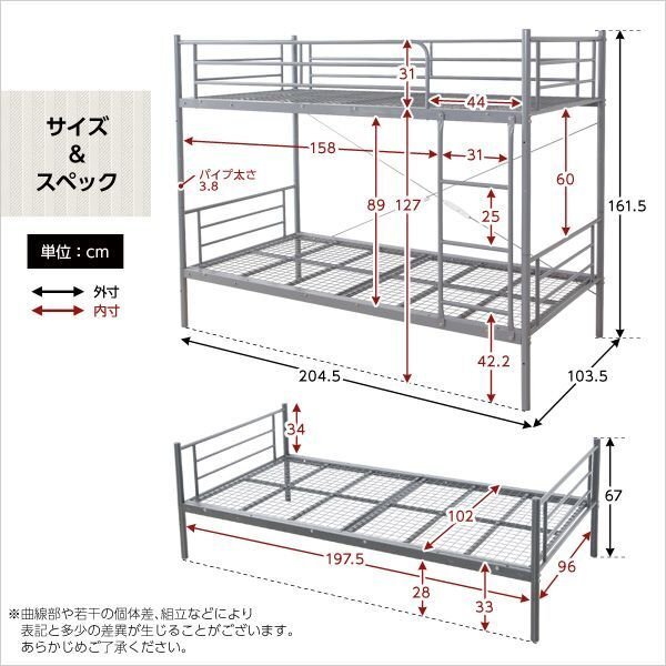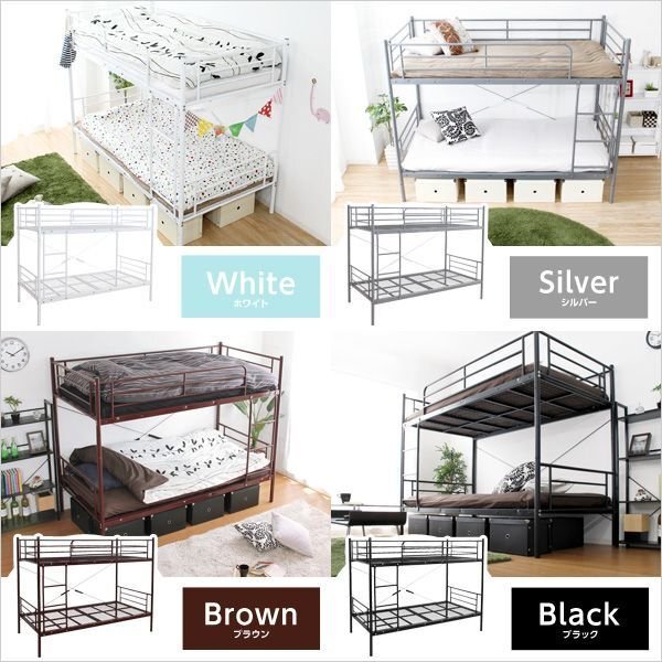 【ポイント】 ①耐震性抜群のスチールパイプ製2段ベッドです。 ②上段・下段が分割できる構造で、シングルベッド2つにも変更可能です。 ③メッシュ床だから、通気性抜群で年中快適です。 ④カラーは選べる4色展開です。 |
