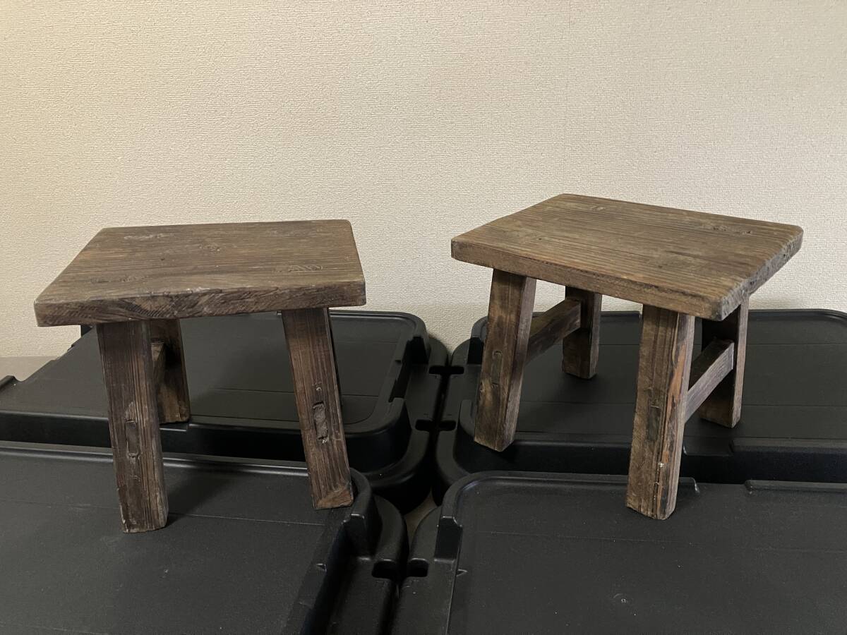 木製の花台 スツール 2点セット おおよそのサイズ 26.5 x 21.3 高さ23cm 木製 スツール アンティーク ヴィンテージ インテリア 什器 店舗什器 飾り台 花台 ベンチ 椅子 サイドテーブル 昭和レトロ プロフィールご一読ください。