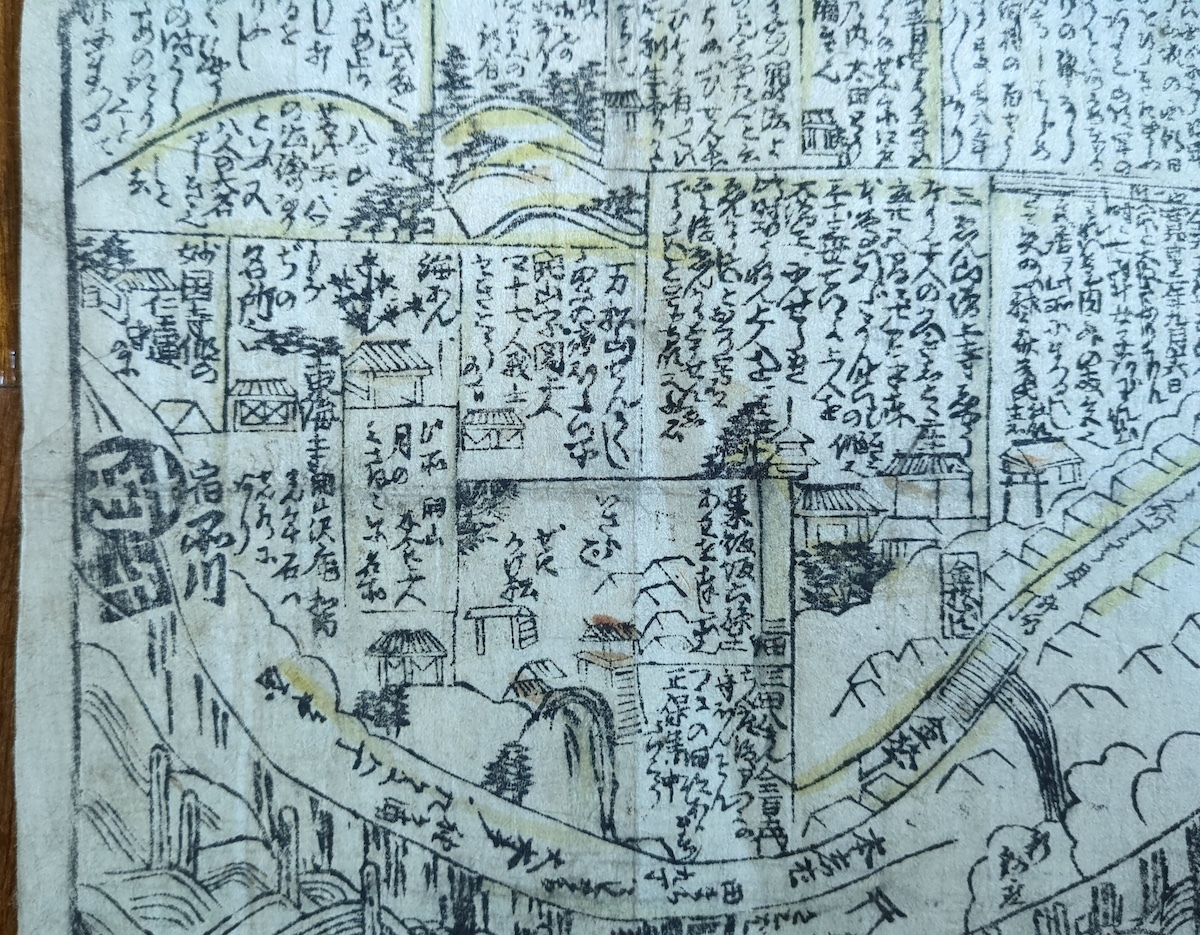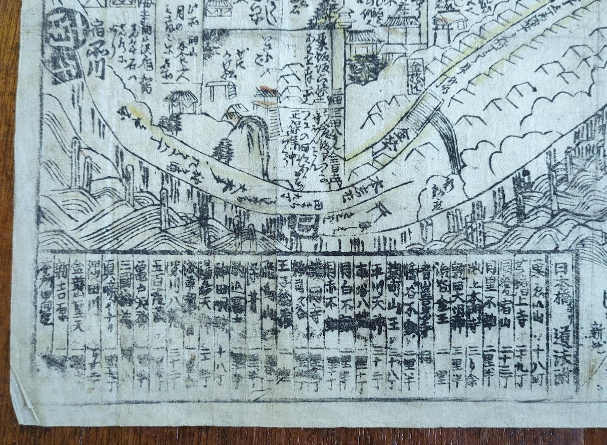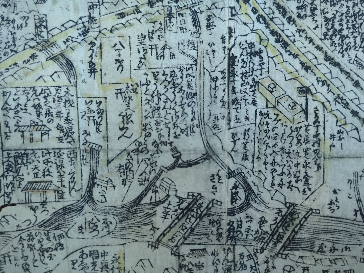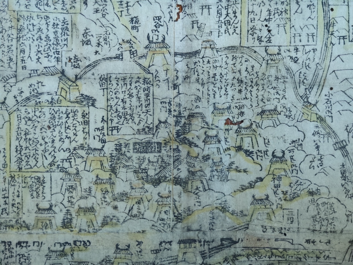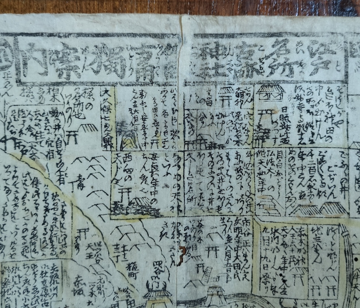 古地図 江戸名所古跡神社仏閣独案内記 江戸期 鳥瞰図 木版画 古文書 神社仏閣 東京 日本橋 細密解説 名所 名勝 摺物 浮世絵 和本 古典籍