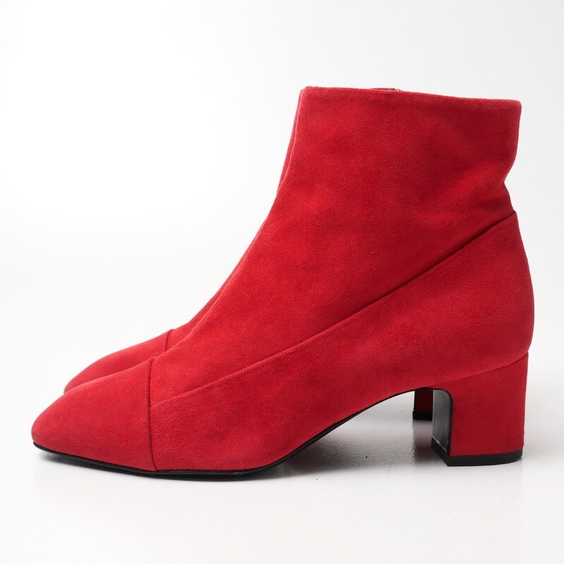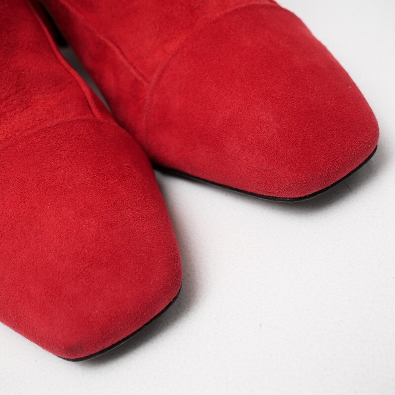 | GS5848*イタリア製 HERMES エルメス Size 35.5 スエードレザー サイドジップ ショートブーツ スクエアトゥ 靴 レッド | |||