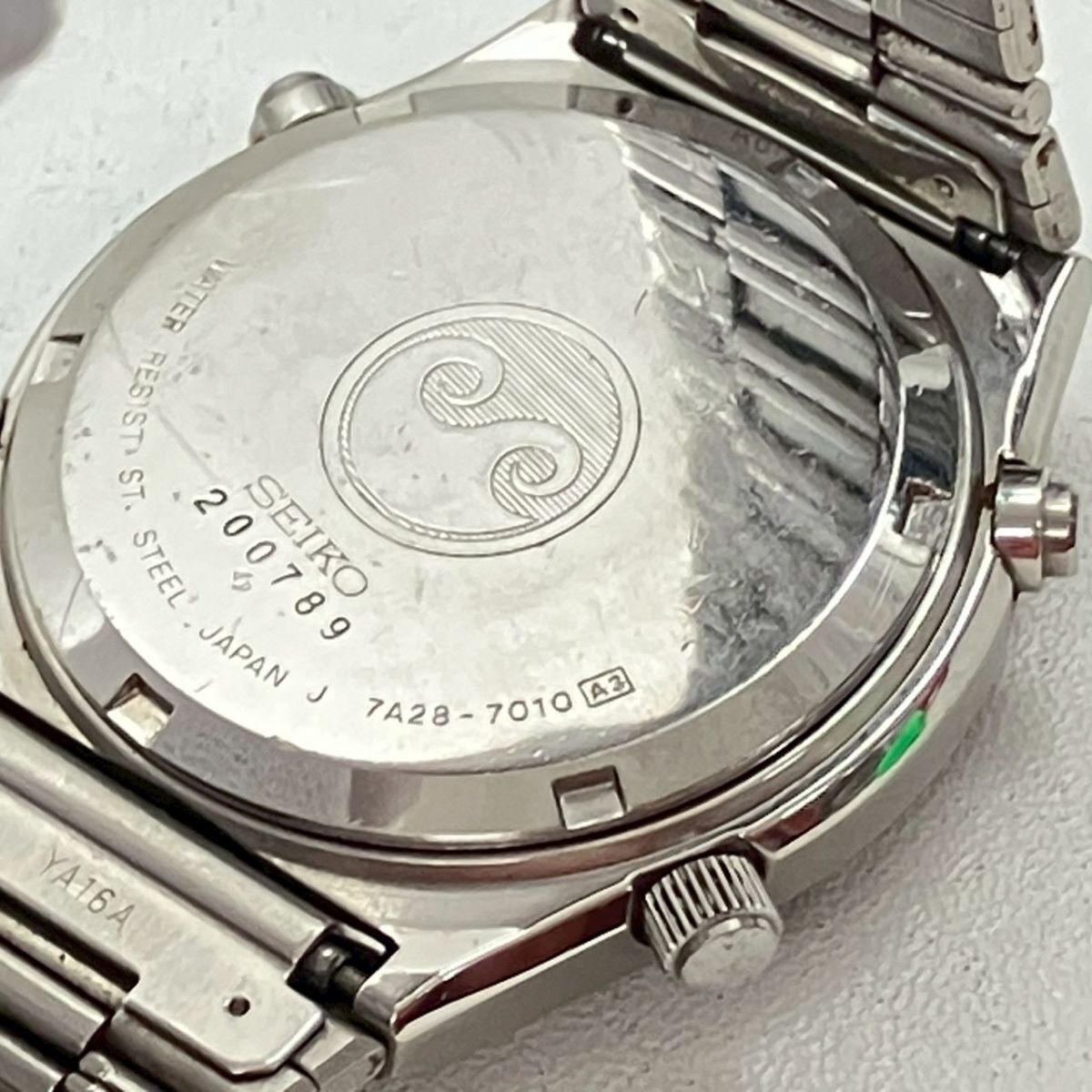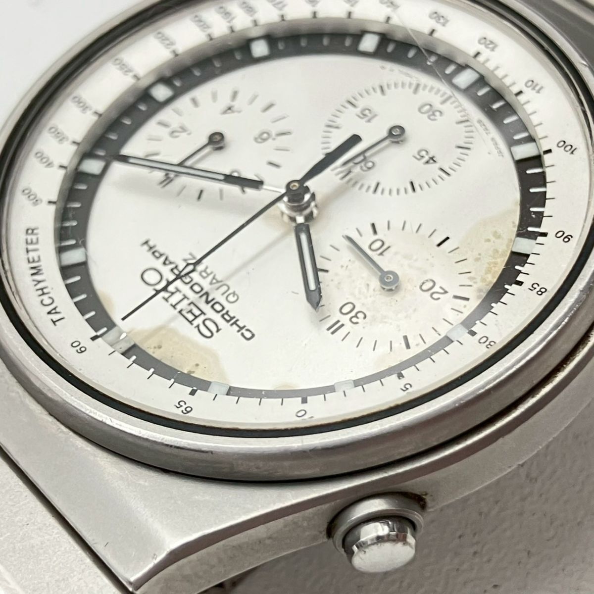 取り扱っている商品は未使用・未開封も含め、全て一度は人の手に渡った一点ものの中古・ジャンク扱いでの商品です。 当方素人ですので肉眼で確認できる簡易的な検品、採寸、および簡易梱包となります。 ※稼働の記載につきましては秒針等の確認のみとなり、全体の動作を保証するものではございません。 また、出品時の中古品の動作状況となりますので、予めご了承の上でご入札ください。 不動の表記につきましてはクォーツ式のムーブメントの場合、動作未確認の状態となります。 電池交換後、不具合があった場合でも返金、返品の対象とはなりませんので、予めご了承くださいますようお願い致します。 細かな日差、オーバーホール状況、社外パーツの使用に関しては保証しかねますので、ご理解いただけた上でのご入札をお願い致します。 上記を踏まえた上で中古品、ジャンク商品として出品させていただいておりますので、全てご理解いただけた上でのご入札をお願いいたします ------------------------------------------------------------------------- 【メーカー】 SEIKO 【モデル名】 スピードマスター 【型番】 7A28-7010 【シリアル】 200789 【サイズ】 直径約3.8cm 腕回り約18cm 【付属品】 画像参照 【稼働状態】 稼働 【その他状態】 リューズ動作 時間:OK 日付:- 曜日:- 文字盤汚れ・劣化あり ベルト金具緩い クロノグラフ動作OK ------------------------------------------------------------------------- 画像にあるものが全てです。 他詳細は画像にてご判断ください。 ※目立つ傷や汚れを中心に写真を撮っておりますが、画像に写りきっていない傷等がある場合もございます。予めご了承ください。 ※商品を多数出品している関係で、稀に商品説明や画像に誤りがある場合がございます。予めご了承ください。 こちらのページをご覧いただく際は、商品説明文と掲載している画像の全てを確認いただいた上でご入札ください。 | |||||||
