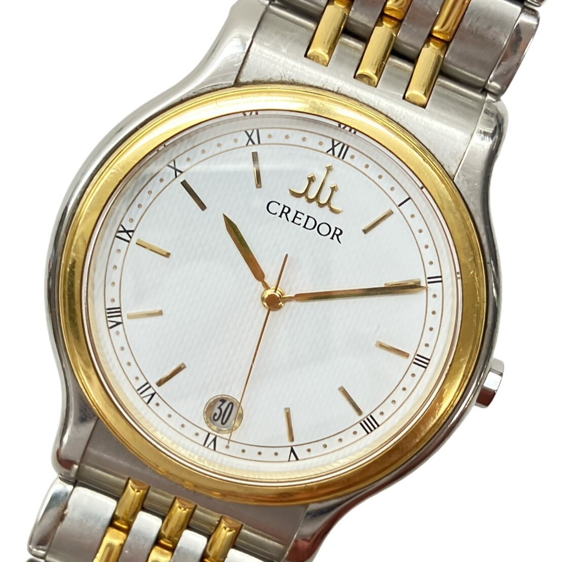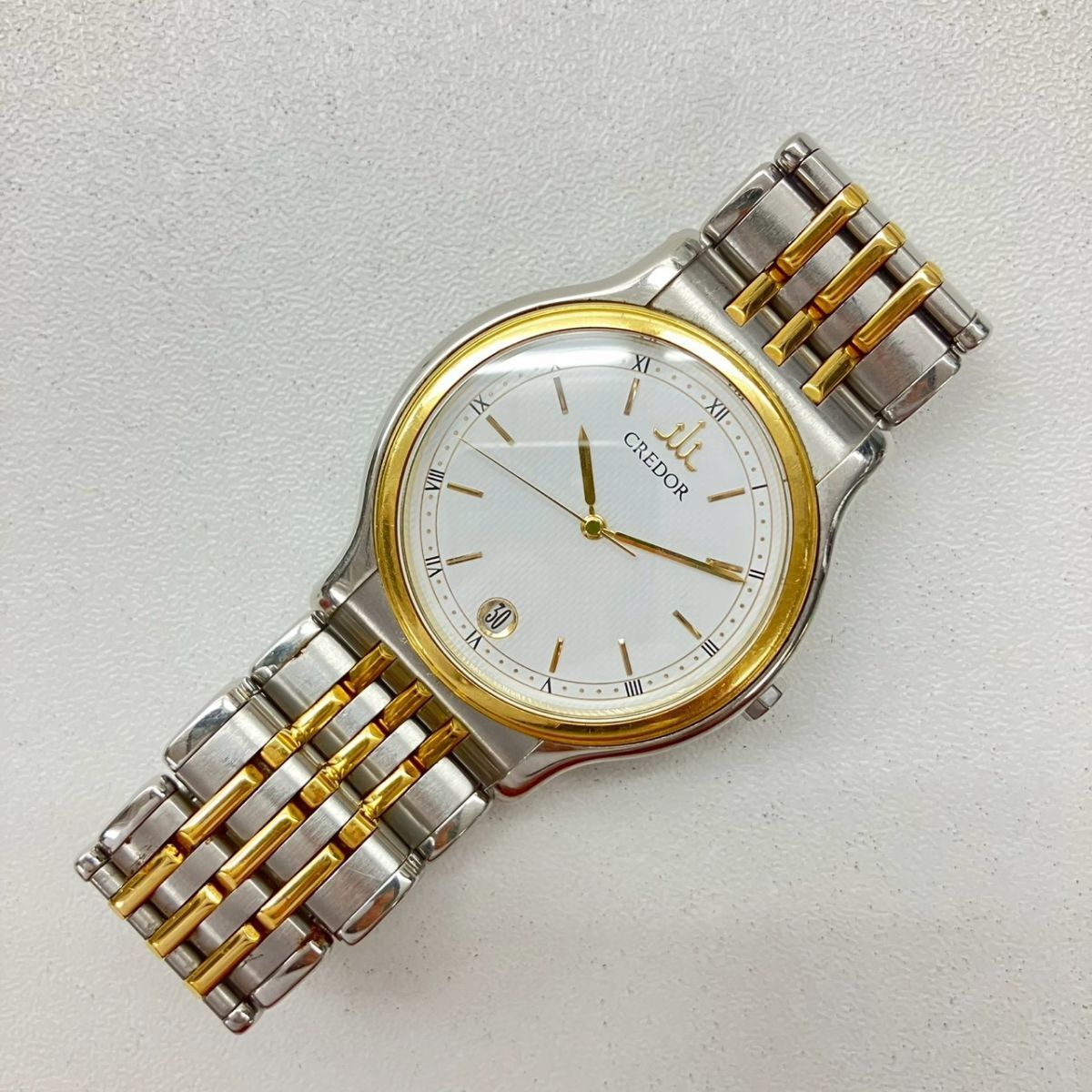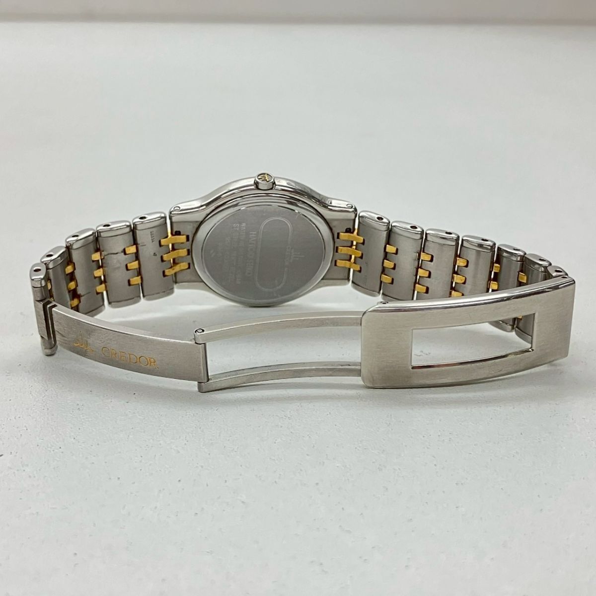 取り扱っている商品は未使用・未開封も含め、全て一度は人の手に渡った一点ものの中古・ジャンク扱いでの商品です。 当方素人ですので肉眼で確認できる簡易的な検品、採寸、および簡易梱包となります。 ※稼働の記載につきましては秒針等の確認のみとなり、全体の動作を保証するものではございません。 また、出品時の中古品の動作状況となりますので、予めご了承の上でご入札ください。 不動の表記につきましてはクォーツ式のムーブメントの場合、動作未確認の状態となります。 電池交換後、不具合があった場合でも返金、返品の対象とはなりませんので、予めご了承くださいますようお願い致します。 細かな日差、オーバーホール状況、社外パーツの使用に関しては保証しかねますので、ご理解いただけた上でのご入札をお願い致します。 上記を踏まえた上で中古品、ジャンク商品として出品させていただいておりますので、全てご理解いただけた上でのご入札をお願いいたします ------------------------------------------------------------------------- 【メーカー】 SEIKO 【モデル名】 CREDOR 【型番】 9572-6000 【シリアル】 900571 【サイズ】 直径約3.2cm 腕回り約14.5cm 【付属品】 画像参照 【稼働状態】 稼働 【その他状態】 リューズ動作 時間:OK 日付:OK 曜日:- ------------------------------------------------------------------------- 画像にあるものが全てです。 他詳細は画像にてご判断ください。 ※目立つ傷や汚れを中心に写真を撮っておりますが、画像に写りきっていない傷等がある場合もございます。予めご了承ください。 ※商品を多数出品している関係で、稀に商品説明や画像に誤りがある場合がございます。予めご了承ください。 こちらのページをご覧いただく際は、商品説明文と掲載している画像の全てを確認いただいた上でご入札ください。 | |||||||