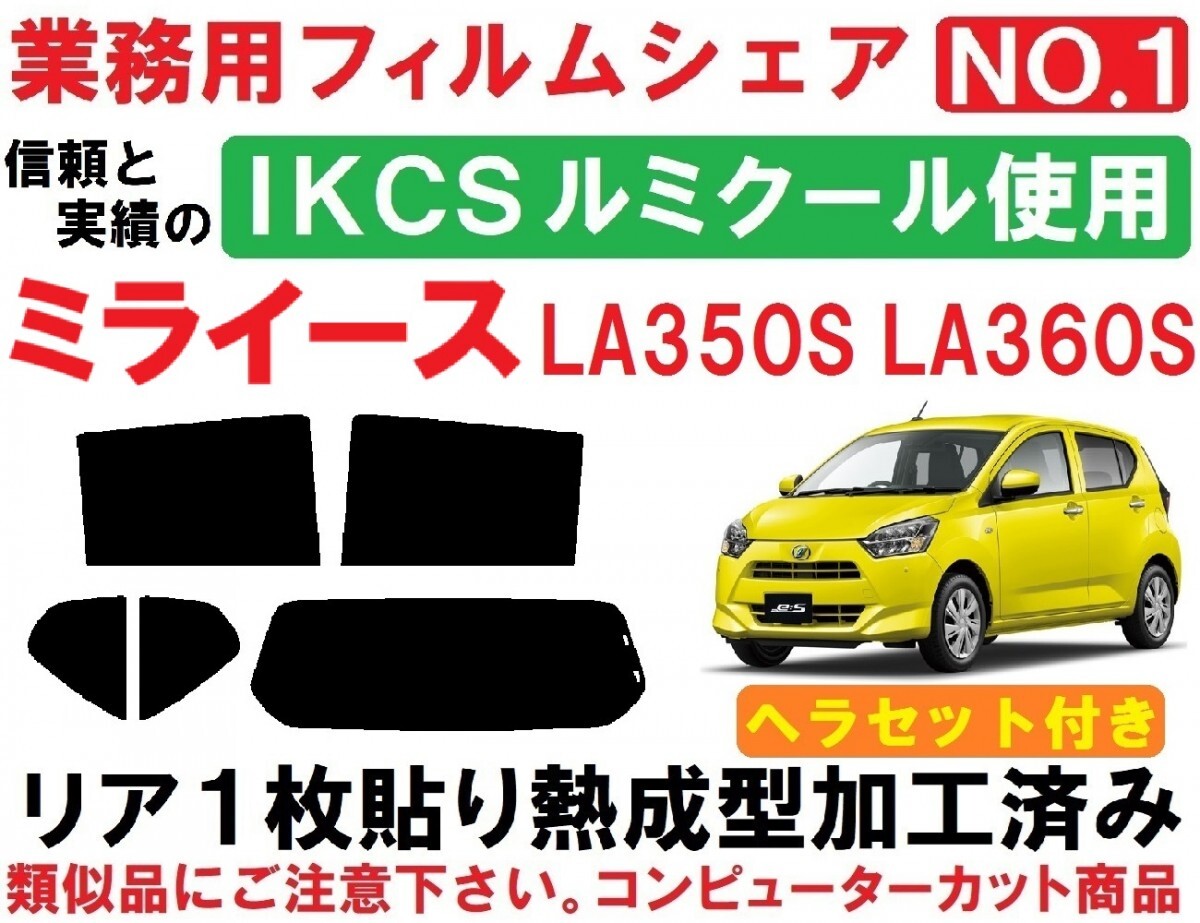 | ミライース LA350S LA360S用『IKCSルミクール使用』1枚貼り成型加工済みフィルム リア5面セットです。(専用施工液付き) ・信頼の品質と実績で永い間業務用フィルムとして選ばれ続けているIKCS製品です。 ・業務用フィルムの中で最も信頼性の高い、ベストセラー商品です。 ・詳しくはIKCS株式会社HPをご覧ください。 ※『ルミクール』は当店でも 施工実績・販売実績NO.1の超人気商品です。 平成29年5月~ ミライース LA350S LA360S に適合します。 ※画像3、ハイマウントストップランプ部分の切り抜きも出来ます。落札後、ご指定下さい。 ※適合等 ご不明な点など有りましたら、お気軽にご質問下さい。 ◇◆◇当商品には、画像2のヘラセットが付属します◇◆◇ ■滑りの良いシリコンタイプのゴムヘラ スムーズに水切り(清掃)・貼り付け後の水抜きが出来ます。 実際の業務でも色々な物を試しましたが、シンプルなこの形状・このメーカー・このグレードの物が1番使いやすいです。 柔軟性が有りガラス(フィルム)に密着するため、フィルム折れも防げます。 ■使いやすい厚みとコシの有るプラヘラ 形状は似ていても各メーカーにより硬さ・厚みなど色々と有ります。 慣れていない方でも扱い易いように少々柔らか目の物になります。 ヘラ先にはフッ素樹脂加工のクロスを貼って有りますので、滑りが良くキズを防止します。 ■ワイプオール(不織布ワイパー) 布同様の丈夫さと紙の持つ吸水性を発揮。糸くずの発生が無く均一素材のため異物混入の心配が有りません。 施工前のガラスクリーニング~施工時にフィルムが触れる可能性の有るガラスの周りのゴム部品の拭き取り清掃~吸水等に大変便利です。 全て実際の業務に使用している物で、その中から使いやすい物を選んでいます。 ヘラセットがご不用の場合、フィルムのみの商品も有ります。こちら ◇◆◇精密コンピューターカット◇◆◇ 貼りやすさを最優先に各部のサイズ・形状など微調整し、改良を重ねた独自のデータを製作。 高精度な最新・大型カッティングプロッターによるカットで正確で滑らかなカットラインを再現しています。 施工業者だからわかる、貼りやすいサイズ・形状に仕上げています。 ◇◆◇リア1枚貼り成型加工済み◇◆◇ リアガラスの湾曲に合わせて熱成型加工して有りますので、平面に貼るのと同様にたるみが出ず1枚貼り出来ます。 通常の成型加工に加え、独自の加工を施し しっかりと成型加工してありますので、追加工など一切不要です。 ◇◆◇専用施工液付属◇◆◇ 軽視されがちな施工液ですが、貼りやすさに大きく関わる部分になります。中性洗剤などで代用せず、必ず付属の専用施工液をご使用下さい。 濃度については車種・季節などにより変わりますので、個別にお知らせ致します。 ◇◆◇精密コンピューターカット◇◆◇ 貼りやすさを最優先に各部のサイズ・形状など微調整し、改良を重ねた独自のデータを製作。 高精度な最新・大型カッティングプロッターによるカットで正確で滑らかなカットラインを再現しています。 施工業者だからわかる、貼りやすいサイズ・形状に仕上げています。 ◇◆◇リア1枚貼り成型加工済み◇◆◇ リアガラスの湾曲に合わせて熱成型加工して有りますので、平面に貼るのと同様にたるみが出ず1枚貼り出来ます。 ※最適な状態に成型加工して有りますので、ヒートガン(ドライヤー)等は不要です。 ◇◆◇専用施工液付属◇◆◇ 軽視されがちな施工液ですが、貼りやすさに大きく関わる部分になります。中性洗剤などで代用せず、必ず付属の専用施工液をご使用下さい。 濃度については車種・季節などにより変わりますので、個別にお知らせ致します。 国内シェアNO.1の『IKCSルミクール』を使用しています。 ルミクールは経年退色が極めて少ない着色加工技術はもちろん、安定した冷暖房効率をアップする熱線遮断効果や断熱効果、内装を守り日焼けを防ぐため、全てのフィルムで99%の紫外線カットを実現しています。 ガラスの飛散防止効果で高い安全性を保ち、ハードコートタイプなのでキズにも強いカーフィルムです。 改良を重ねながら 信頼の品質と性能で、永い間業務用フィルムとして選ばれ続けています。 ■フィルムの種類■ 可視光線透過率 3% NS-003HC 可視光線透過率 7% NS-008HC 可視光線透過率13% NS-015HC 可視光線透過率20% NS-020HC 可視光線透過率30% NS-030HC 可視光線透過率46% NS-045HC ■全商品、キズに強いハードコート・紫外線(UV)99%カットです。 ※可視光線透過率が低くなるほどフィルムの色は濃くなります。 サイドとリアで濃さを替えたり等、可能です。 部分的にフィルムが必要になった場合、単品販売も承ります。 他にもミライース用フィルム、各種出品中です。こちらもご覧ください。 ご不明な点など有りましたら、お気軽にご質問下さい。 | ||