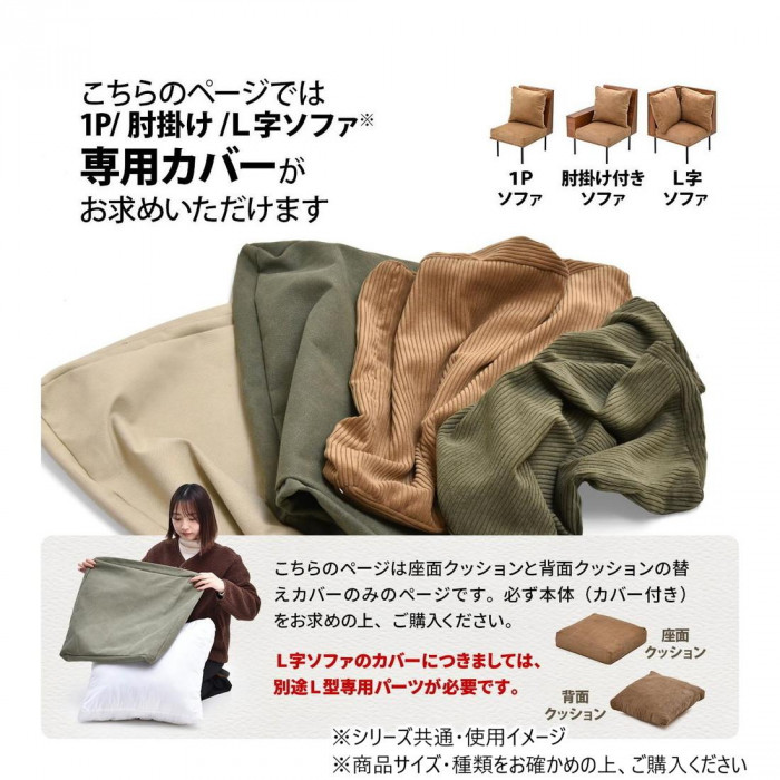 | 背クッション・座クッションの専用替えカバーです。 ※ソファ本体は付属いたしません。 ※L型ソファは別途L型ソファ専用カバーが必要です。 ※北海道・沖縄県・離島は別途送料発生いたします。 ※商品出荷後のキャンセルにつきましては、キャンセル料が発生いたします。キャンセルの場合は出荷前に早期ご連絡をお願いいたします。 |