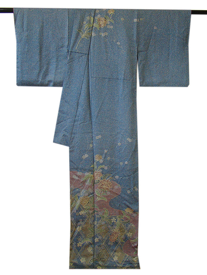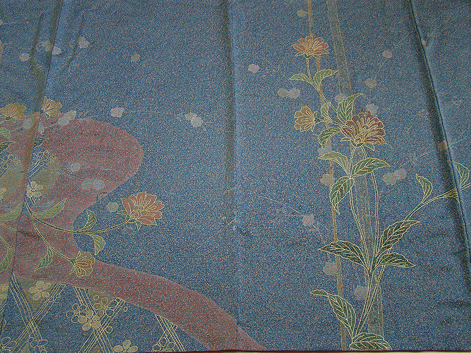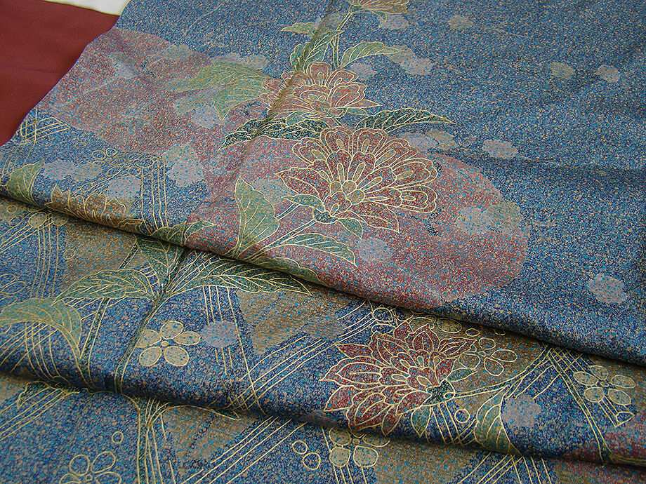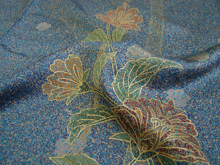 | 商品説明 | こちらのお品は「袷」ですので10月から5月までお召頂ければと思います。 とてもしなやかで柔らかな手触りの着心地良い重めの上質な極上ちりめん地の生地、 紺、ベージュ、灰、水色等のたたき染に花木柄の染柄に金彩加工仕立て、 気品に満ち溢れた彩りが正統派のお着物として一枚は欲しい逸品の素敵なお着物です。 八掛は鳶色に麻の葉柄の金彩染(正絹)、身幅広め、幅広い年代の方にお召頂けます。 |