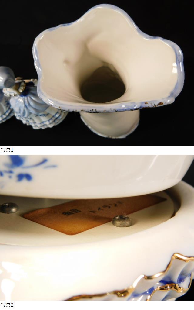 (北海道・九州地方の方は1290円をご負担ください。沖縄、離島はゆうパック送料着払いとなりますのでご了承願います。その他着払いをご指定の場合は送料が変わりますのでご了承ください。ご落札分のみのご入金の場合も着払いとなり、記載の送料よりも高くなる可能性がありますのでご注意ください)(※佐川急便発送ご落札者様から集荷依頼していただければ可能) ※お引き取り歓迎です。お引き取りに来られる場合は、梱包をしませんので、お取メッセージに、ご落札翌日のAM9時までにご連絡くださいm(__)m(引取りは金・土・日以外の朝9時~17時00分まで可能その他ご相談) ※ご落札後、同梱をご希望の商品がありましたら翌日朝9時までに「同梱依頼をする」をチェックしてご連絡ください。こちらから折り返し送料のご連絡をさせていただきます。 ※配送の日時を指定される場合,その他ご要望がありましたら ご落札翌日朝9時までに、お取引メッセージにお知らせ願います。発送の都合でそれ以降にご連絡いただいた内容のご要望はお受けできない場合がありますので予めご了承願います。ご指定日時やご要望は簡潔にご記入ください(宅急便指定可能時間→午前中・14~16時・16~18時・18~20時・19~21時) ★1点の花瓶のみシールが貼ってあり、それにORIGINAL Demainとあります セット内容: 陶器人形(貴婦人像・犬を抱く姿/オルゴール機能付き) 1体 約高さ16.7 x幅11.4 x奥行11.4 ㎝ 約360 g 曲名メモリー(シールに記載) 下のゼンマイの陶器が欠品しています ボンド跡があります