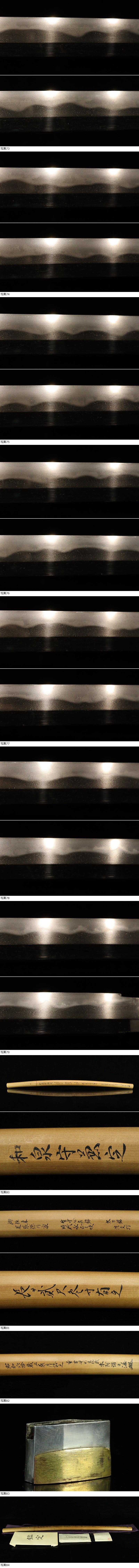| ■刀剣のサイズ表示について 元幅・・・焼出し付近を測定しております 先幅・・・横手筋付近を測定しております 元重ね・・・焼出し付近の厚みを測定しております 先重ね・・・横手付近の厚みを測定しております (多少の誤差はご容赦ねがいます) ■銃砲類のサイズ表示について 全長・・・銃身先から台木尻までを測定しております 銃身・・・台木を除いて金属部分を測定しております (多少の誤差はご容赦ねがいます) 当社が出品する刀剣類は、入手した時の状態のまま出品しております。 ハバキ、小道具等も当社で調整したり付け替えたりはしておりませんので、合わせではないかというクレームは一切受け付けません。 刀身の疵も隠すことなく載せておりますので写真をよくご覧になってご入札ください。 疵に関して、説明がない等のクレームは一切受け付けません。 写真ではわかりにくい部分は質問欄やお電話でお問い合わせください。 但し、説明欄に表記のない刃切れに関してのみ返品やご相談に応じます。 ※ご落札しご購入されお手元に届いてから20日以内に 登録証に記載されている各都道府県の教育委員会にご連絡し 登録証の所有者変更を必ず行ってください | |||