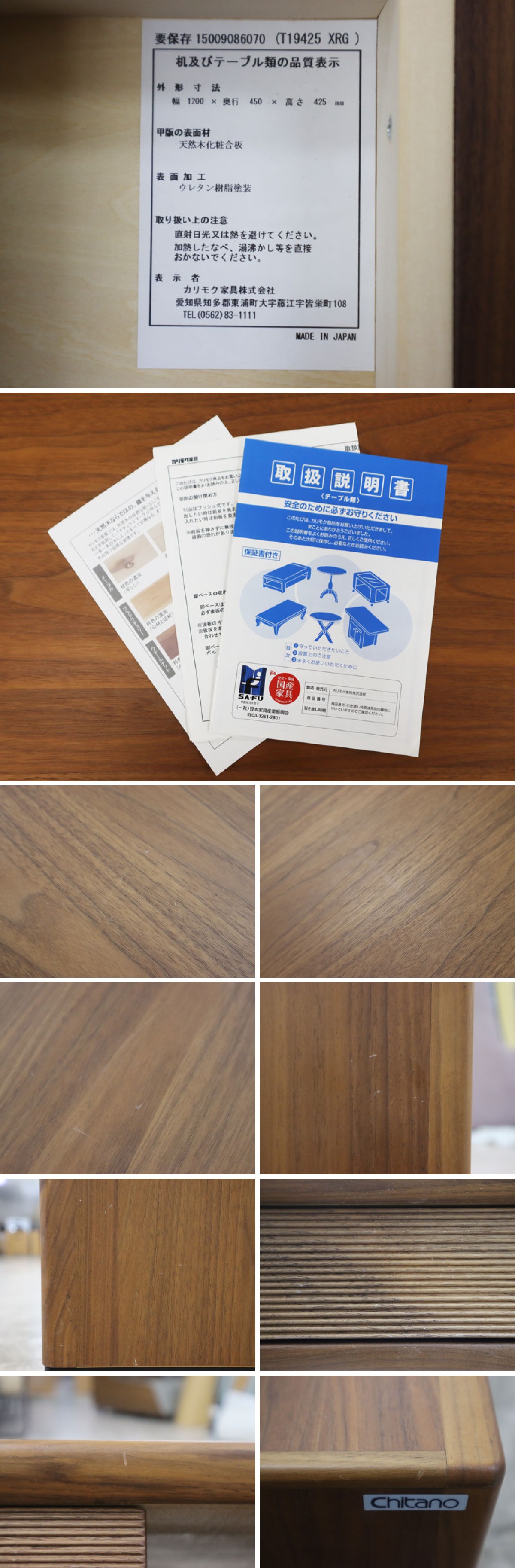 【仕様】 品番:T19425 XRG サイズ:約 幅120×奥行45×高さ42.5cm ※実寸のため、多少の誤差はご了承下さい 素材:ウォールナット材/ウレタン樹脂塗装 |