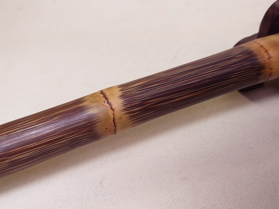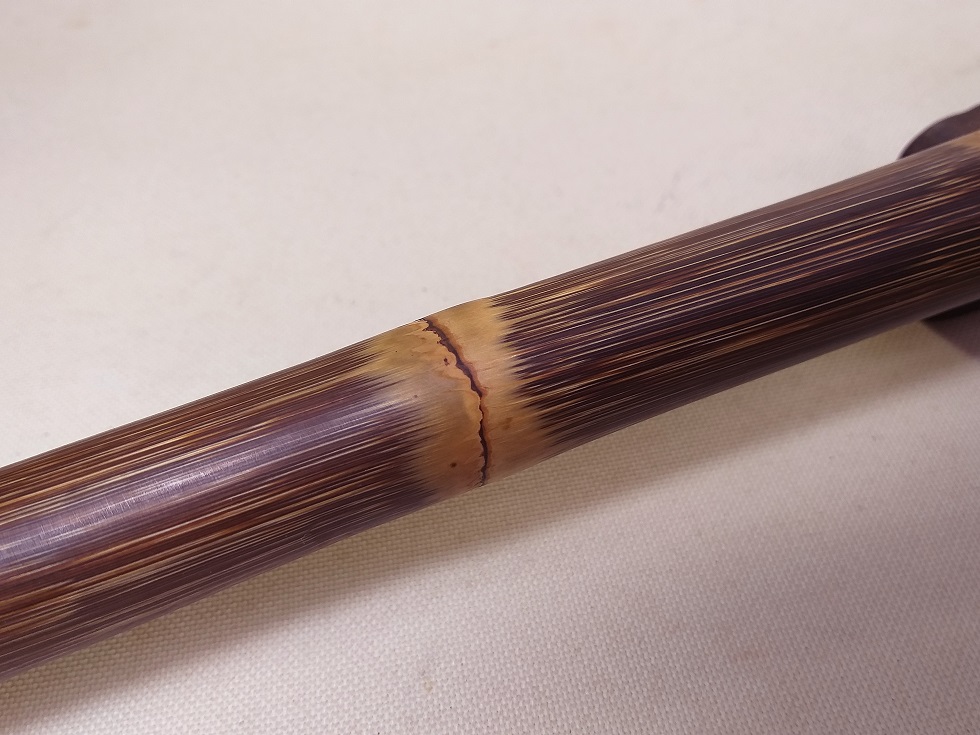 現在出品のこの3本の竹材の状態は、致命的な裂け、虫喰い、傷、欠け、変色、材質劣化等の深刻な問題はません。また、火通り(火で炙り人工的に真っ直ぐに矯正する)、石染め、蝋煮(蝋液で煮る)、湯で煮る等の人工的加工処理は、一切されていません。