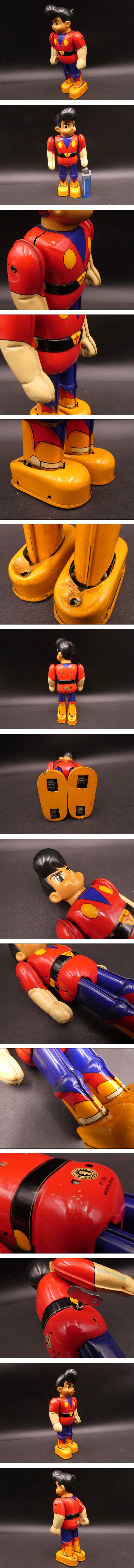 | ビリケン商会のブリキフィギュア「宇宙少年ソラン」です。 ※スマホでご覧の方は必ず「もっと読む」をタップし複数画像と追加説明をご覧のうえご検討下さい。 ・コレクター処分品。 ・全長約22cm。 ・踵部に凹み、全体に拭き取っても落ちない汚れ、錆、キズ、プラ部のベタつきのある品物です。また、喫煙者宅で飾られていた品物につき鼻を近づけるとタバコ臭があります。他にも見落とした傷みがありましたらご容赦願います。細部を気にされる方は入札ご遠慮ください。 ・付属のゼンマイで巻き上げると両足が前後に動きますが保証はできません。 ・箱等付属品無し。 ・画像でご判断いただきご検討をお願いいたします。 | ||