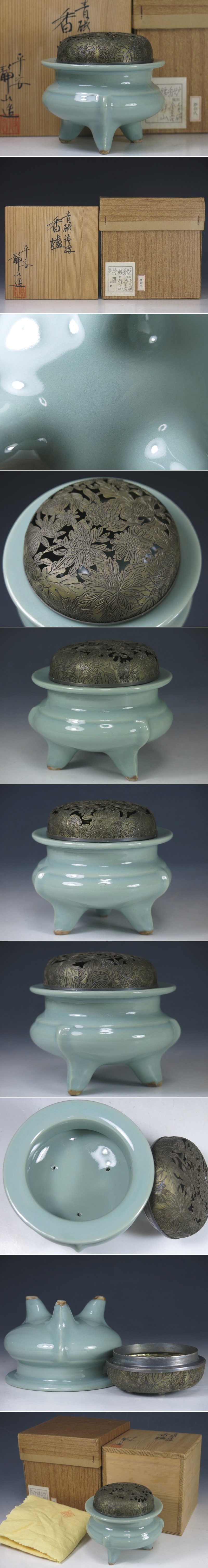 | 商品名 | 平安静山造 青磁袴腰香炉 共布 共箱 茶道具 |