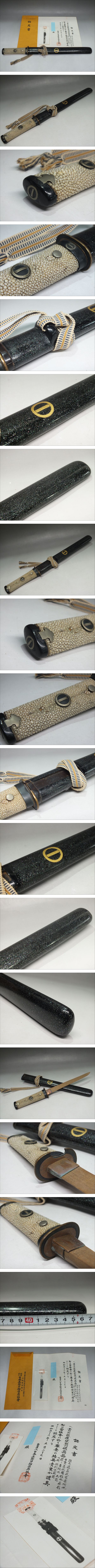 | ※ご入札いただいた時点で下記記載事項全てにご了承いただいたものとみなします。 【商品状態】 全長:47.8㎝ ※若干の誤差はご了承下さい。 旧家蔵出し品となります。 刀身、小柄は付属しておりません。 外装拵のみの出品となります。 詳細は画像にてご確認下さい 商品状態等記載事項は当方判断ですので、あくまでもご参考としていただき、最終的なご判断はお客様のご判断にてのご入札をお願い致します。ご入札いただいた時点で商品状態等に対して了承したものとみなします。ご入札後は一切のクレーム等は受け付けませんので、ご理解の上ご入札ください。 経年の劣化、細かな傷等がある場合がございます。 あくまでも中古品等をご理解できる方のみご入札をお願いいたします。 PC上の画像と色目が若干異なる場合がございます。 新品・中古品問わず、一度人の手に渡っている商品ですので、ご理解のある方のみご入札をお願い致します。 説明文に記載のある物や写真に写っているもの以外は基本的に付属しておりません。 落札後のトラブルを避ける為にも、説明・画像をよくご覧になってから、ご入札のほどよろしくお願い致します。またオークション対応や商品に関すること等に対しまして気になる点等がございましたら、ご質問等にてあらかじめご連絡等お願いいたします。商品状態に関してはあくまでも当方の判断基準となっております。状態等の詳細は画像を見て各自の判断にてご入札ください。ご入札いただいた時点で商品状態等に対して了承したものとみなします。 | |||