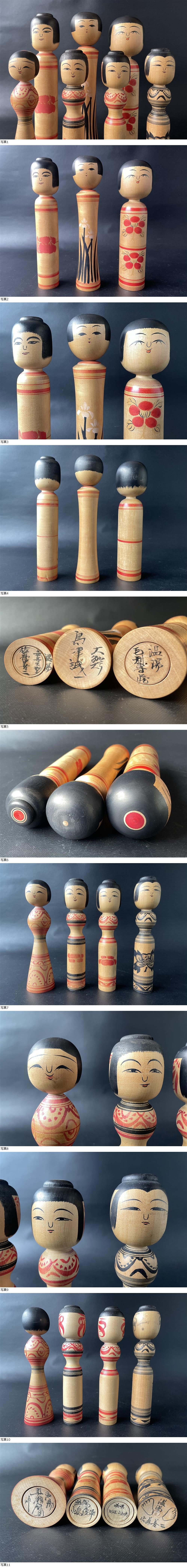 | 伝統こけし 温湯系 津軽系 まとめて7点 奥瀬鉄則 佐藤善二 阿保六知秀 毛利専蔵 島津誠一 |