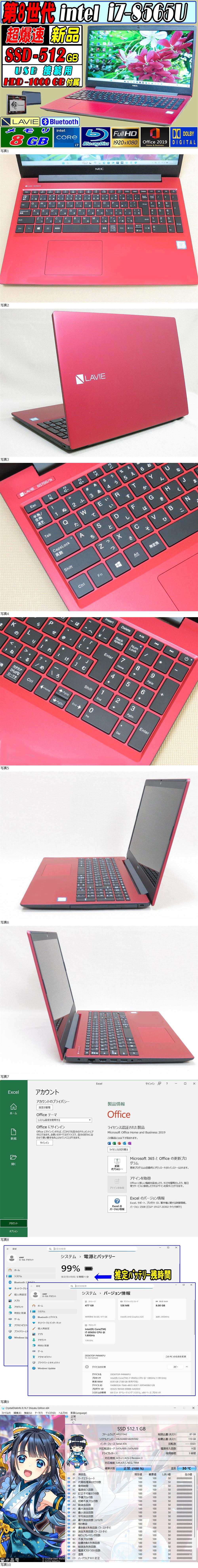第8世代のCPU【intel i7-8565U】を搭載、外観は【カームレッド】の鮮やかで、僅かに紫みのある赤色のオシャレな印象の LaVieシリーズの【上位機種】NECノートパソコンです。