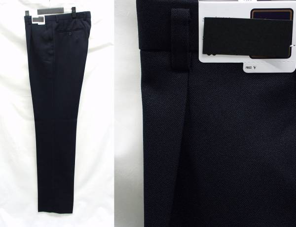 【サイズ】 79cm 【実寸】 ウエスト(胴回り)79cm わたり幅34cm 股上(脇計測)25cm 前股上28cm 裾幅22.5cm 股下91cm 【デザイン/仕様】 ・股上が深めでややゆったりとしたシルエットのワンタックパンツ、新品、裾上げしていない状態です。 ワンタック、ウォッシャブル対応。 【素材】 ポリエステル100% 【色/柄】 濃紺/ネイビー無地。(カルゼ織りでこまかい斜め方向の織が入っております。) ・程よいハリがあり、やや厚手の秋冬向けのポリエステル素材を使用。 ・ご家庭でもお洗濯可能なので、毎日のお仕事用、ビジネスにお薦めのスラックスになります。 ・秋~冬~春先にかけて秋冬メインのシーズンに対応致します。