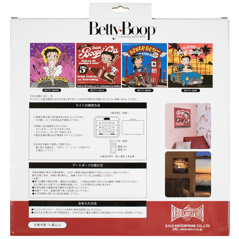 | 商品説明 | 《商品説明》 アメリカンオールドキャラクターベティーブープ!! 昔からみんなに愛されているオールドアメリカを代表するキャラクターベティーブープにLEDキャンバスライトが仲間入り♪ スイッチの切り替えで光る、おしゃれな壁面用のインテリアです! 高級な絵画用のキャンバス・木枠を使用し、その中にLEDライトを入れちゃいました☆ 部屋を薄暗くして、スイッチをON! するとベティちゃんのキュートな絵柄が、暖色系の優しい光に浮かび上がります。 BARや落ち着いた雰囲気作りにぴったりですよ~。 普段は光らせずに飾るだけでもお洒落な絵柄になっています! ここぞという時に、ONしてください!笑 ポスターとは違って、厚みのある布地のファブリックアートって所がなんかいいですよね。 普通のアートボードにはもう飽きた!って方にオススメです!! パッケージもかわいいので、プレゼントにも! ■サイズ(約): W30 x H30 x D4cm ■素材:・フレーム/MDF ・キャンバス/ポリエステル ■単三電池(別売り):3本使用 ≪掲載写真について≫ 撮影環境やお客様のモニターなどの影響により、商品写真は 実際のものとは色や質感が異なって見える場合がございます のでご了承ください。 ≪送料≫ ●ゆうパック、全国800円(北海道、沖縄、離島以外) 北海道1300円、沖縄1300円です。 ≪注意事項≫ 土曜、日曜、祝日はお休みさせていただきます。 (その他臨時休業の際は自己紹介欄に記入いたします。) 発送、ご連絡等は翌営業日にさせていただきます。 ★自己紹介欄は必ずご覧ください★ ★その他商品も多数出品しています、 よろしければ、ご覧下さい。 ★同時落札は同梱対応OK!送料は梱包の大きさによって変わりますので、落札後にご連絡します。 *大型商品以外になります。 ●●●●●●●●●●●●●●●● 〒533-0004 大阪市東淀川区小松1-9-23 (株)ラヴィアンローズ 田中 TEL/FAX 06-6476-7822 hiro_t@quartz.ocn.ne.jp ●●●●●●●●●●●●●●●● ウオッチリストに追加 |