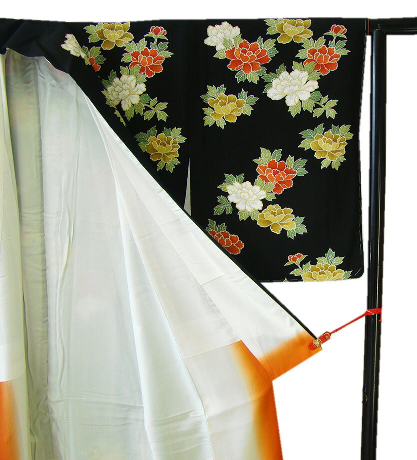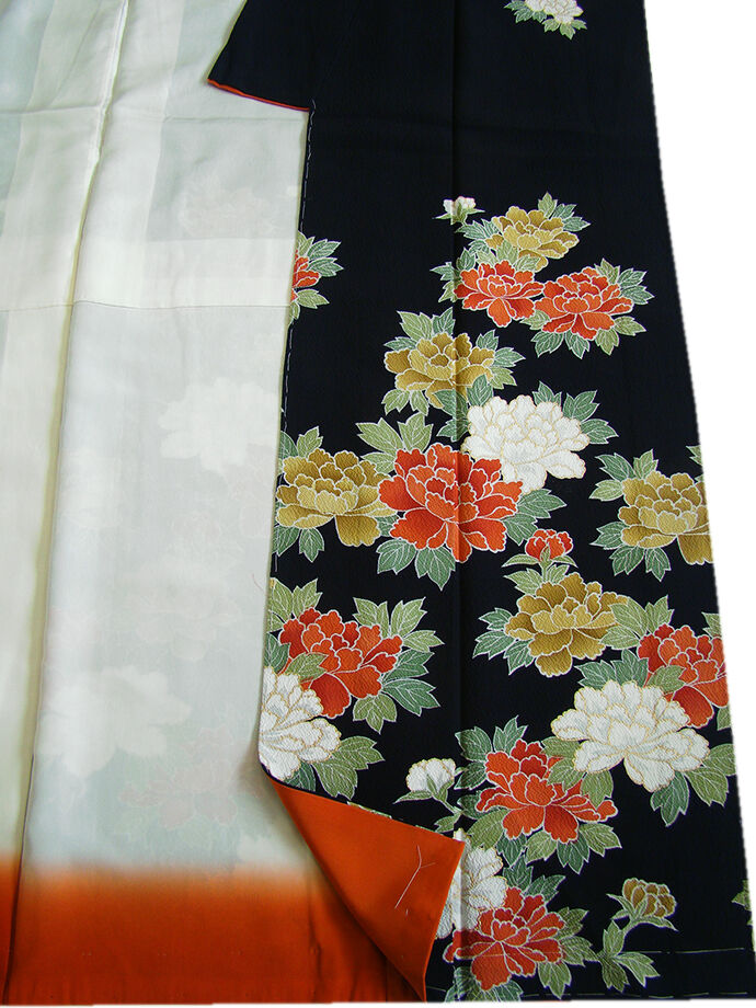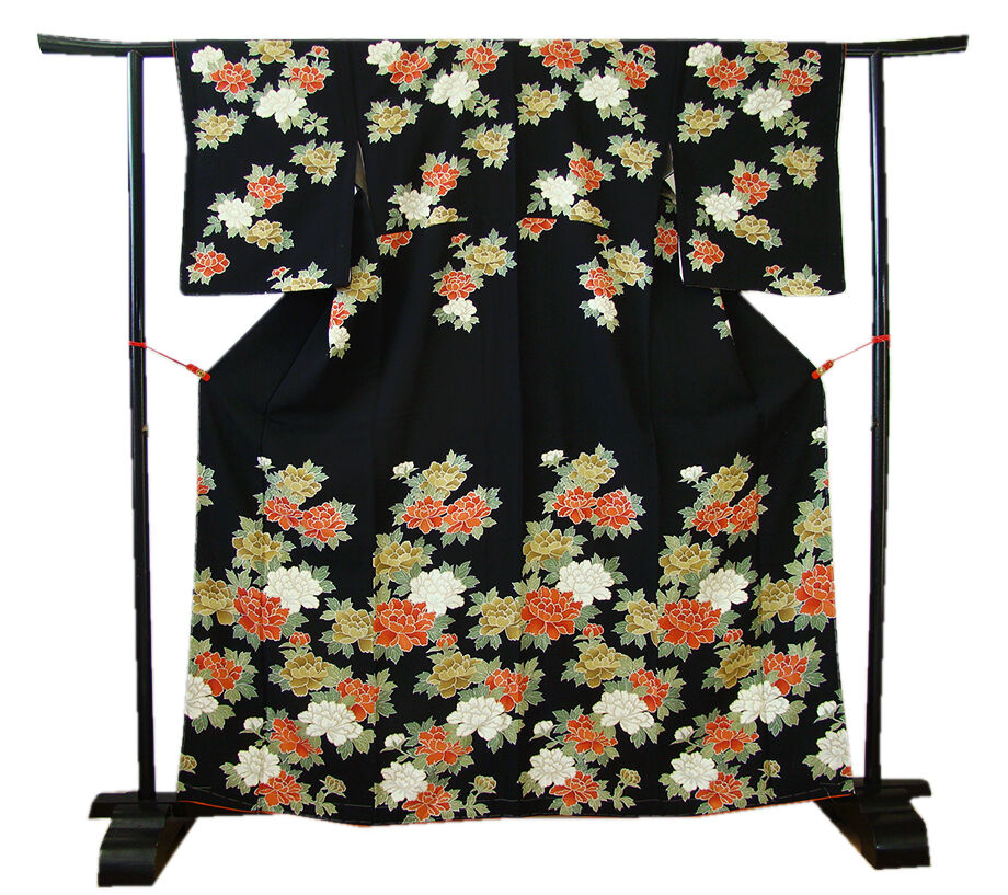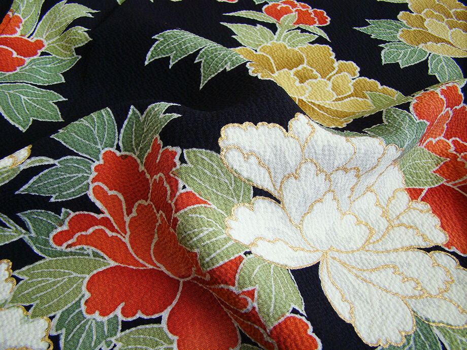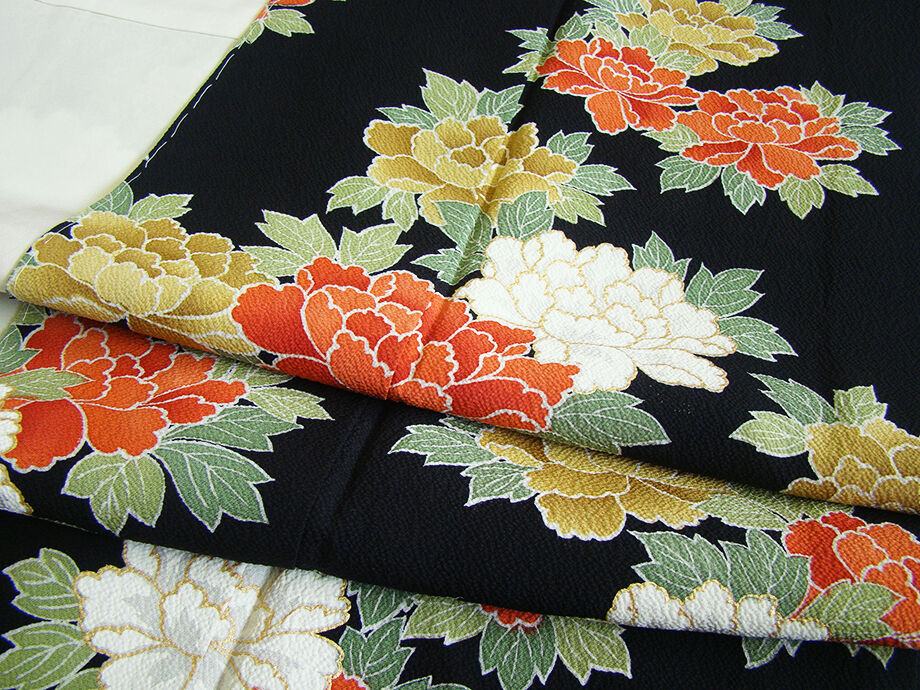 | 商品説明 | こちらのお品は「袷」ですので10月から5月までお召頂ければと思います。 しなやかなぽってりふっくらとした手触りの着心地良い重めの極上ちりめん地の生地、 黒色地に朱、黄土、黄緑、白色等の花草柄の染柄に金彩加工仕立て、 八掛は橙色(正絹)、幅広い年代の方にお召頂けます。 |