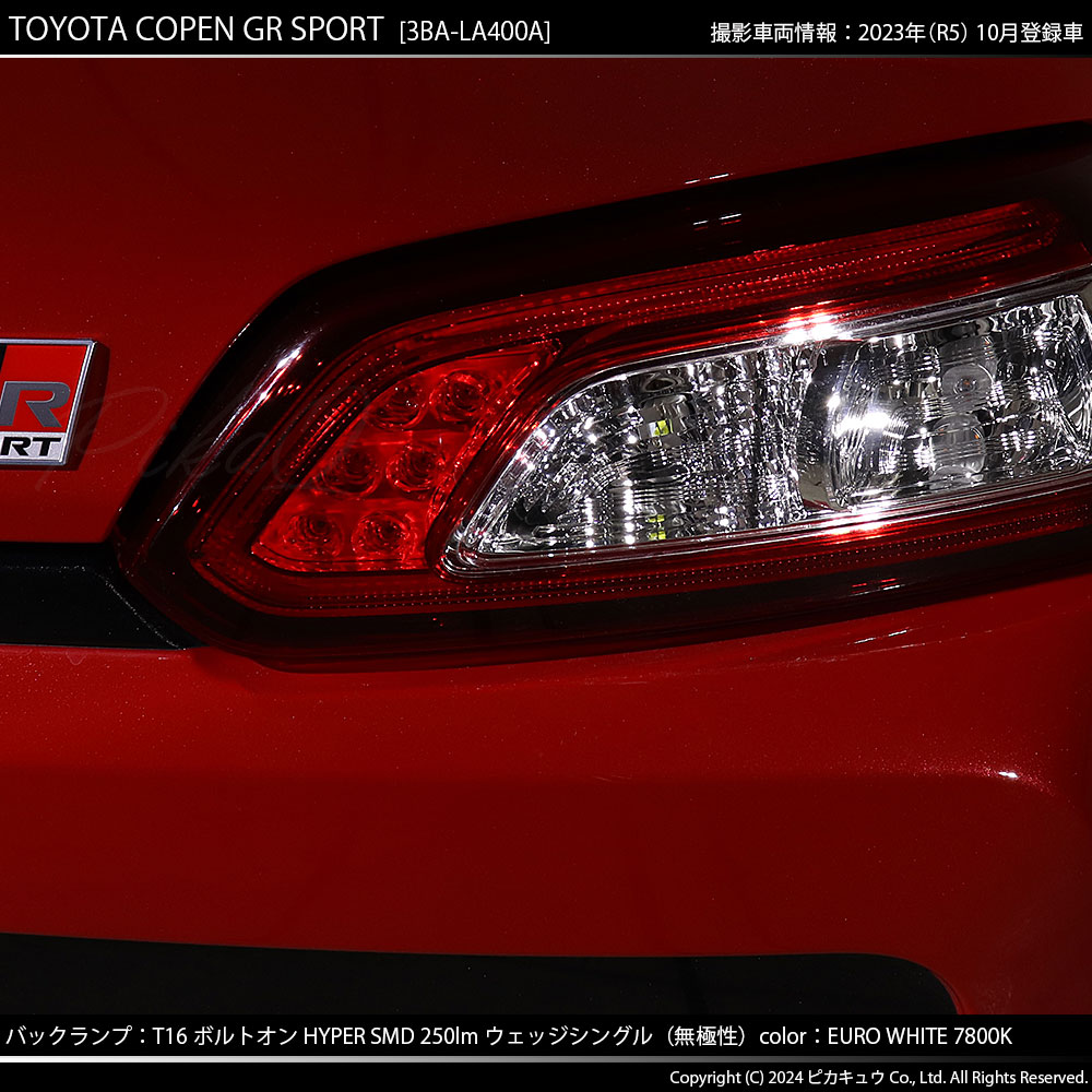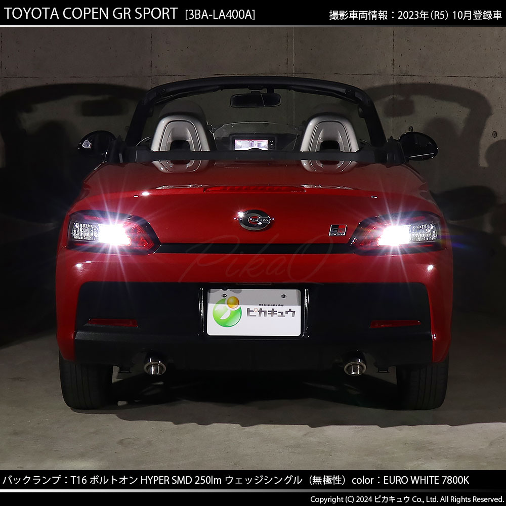 LED,ピカキュウ,LED専門店,LEDバルブ,T16ウェッジ,T16 NEW ボルトオンSMD,250ルーメン,蒼白色 7800K,青白色,EURO WHITE,ユーロホワイトバックランプ,後退灯,トヨタ,TOYOTA,コペン,COPEN,GRスポーツ,GR SPORT,LA400A,ダイハツ,DAIHATSU,LA400K