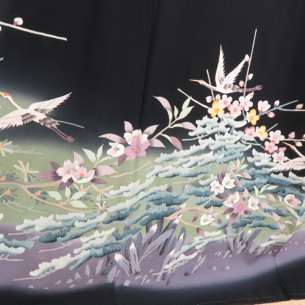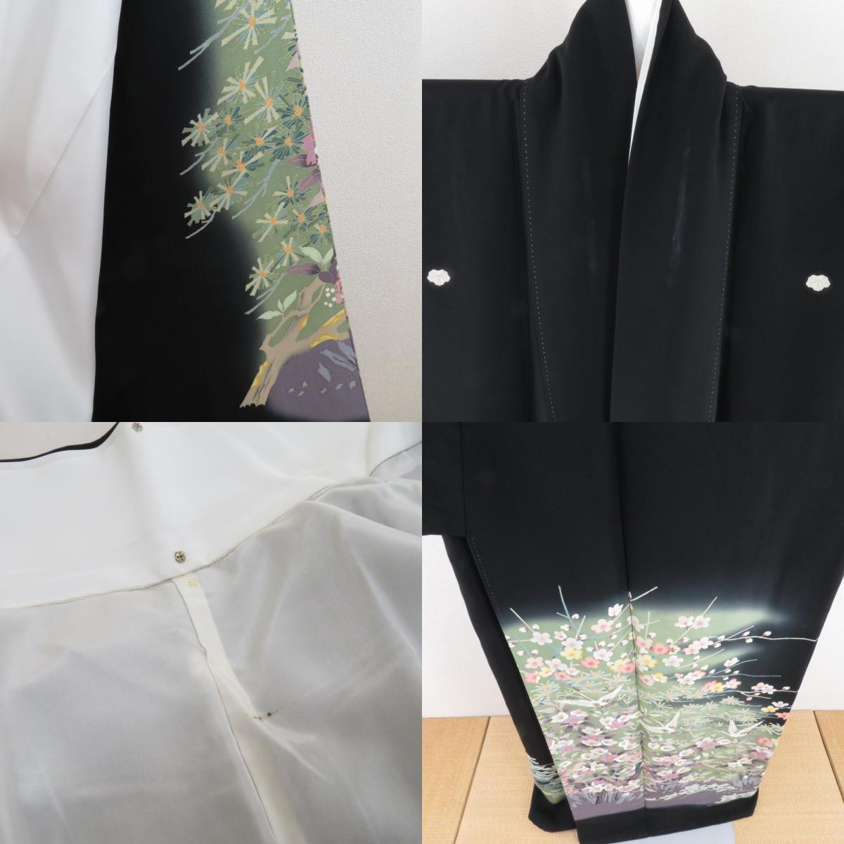 | 本加賀友禅 黒留袖 小田美知代 鶴に四季花文様 正絹 袷 広衿 比翼付 落款入 作家物 本場加賀友禅染 礼装着物 フォーマル 身丈157cm |