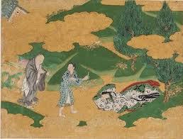 《中将来訪、浮舟(桐壺天皇の皇子・八の宮の姫君)僧都の母尼君の傍で過す》