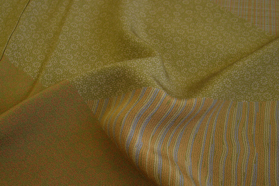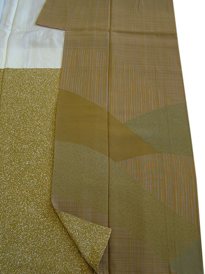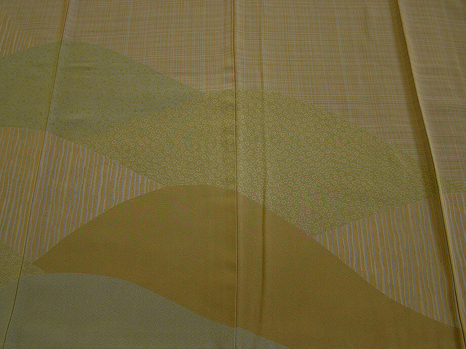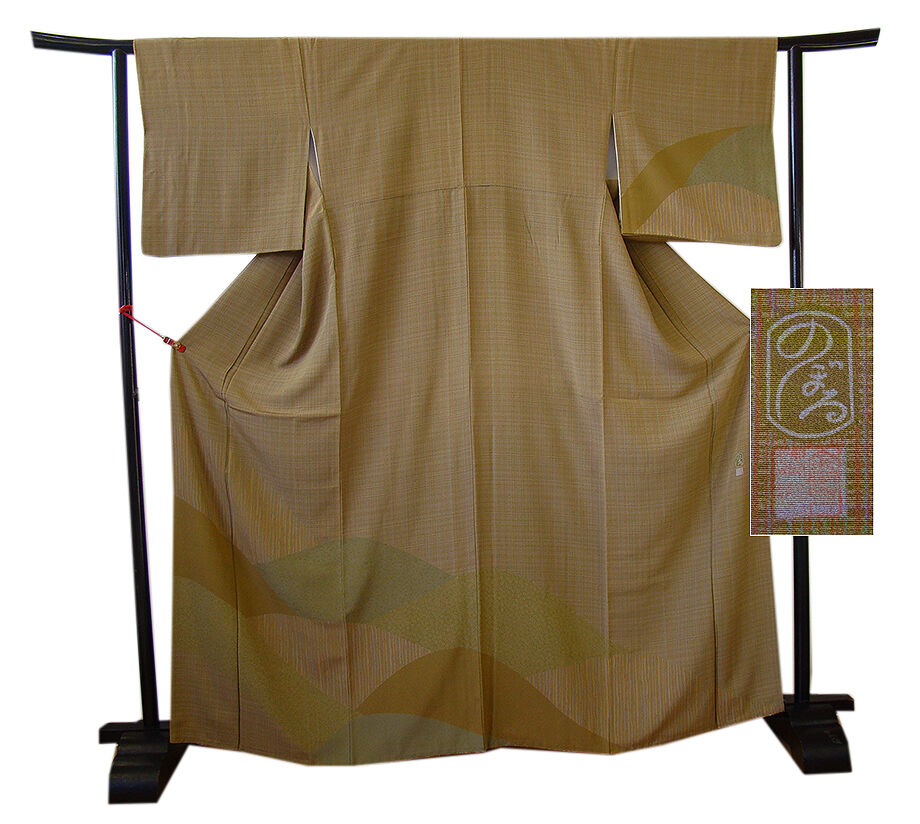| 商品説明 | こちらのお品は「袷」ですので10月から5月までお召頂ければと思います。 大変にしなやかで柔らかな手触り良い滑らかな重めの極上ちりめんの生地となっております。 鶸茶色地に水浅葱、薄い赤茶色の縞に、裾にかけて小花柄、変り縞等の寄せ柄の染柄、 八掛は鶯色地に卵、白色のたたき染柄(正絹)、作家の落款入り、裄長め、 幅広い年代の方にお召頂けます。  |