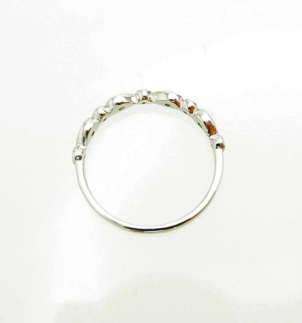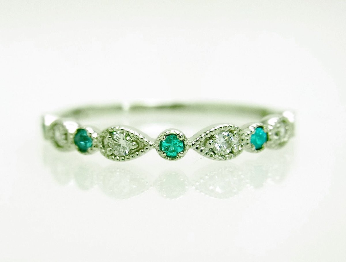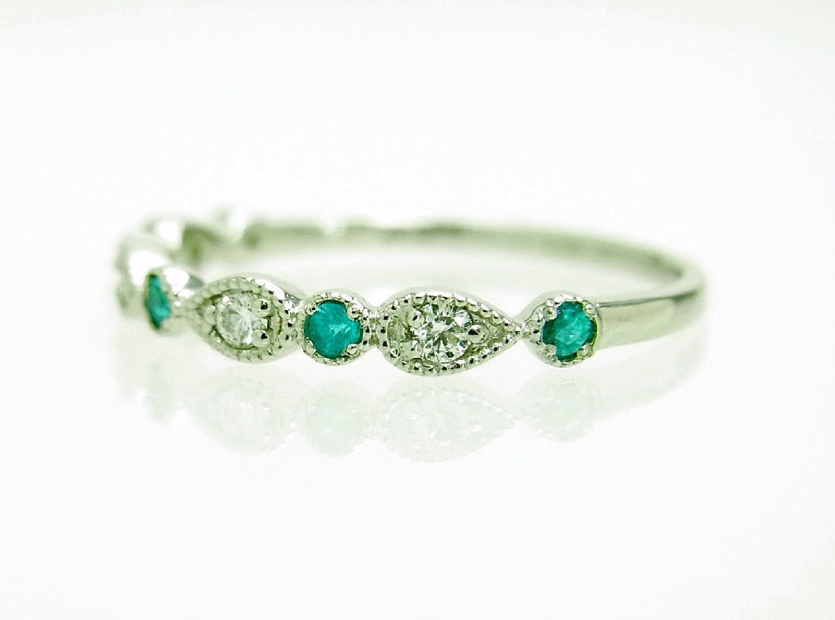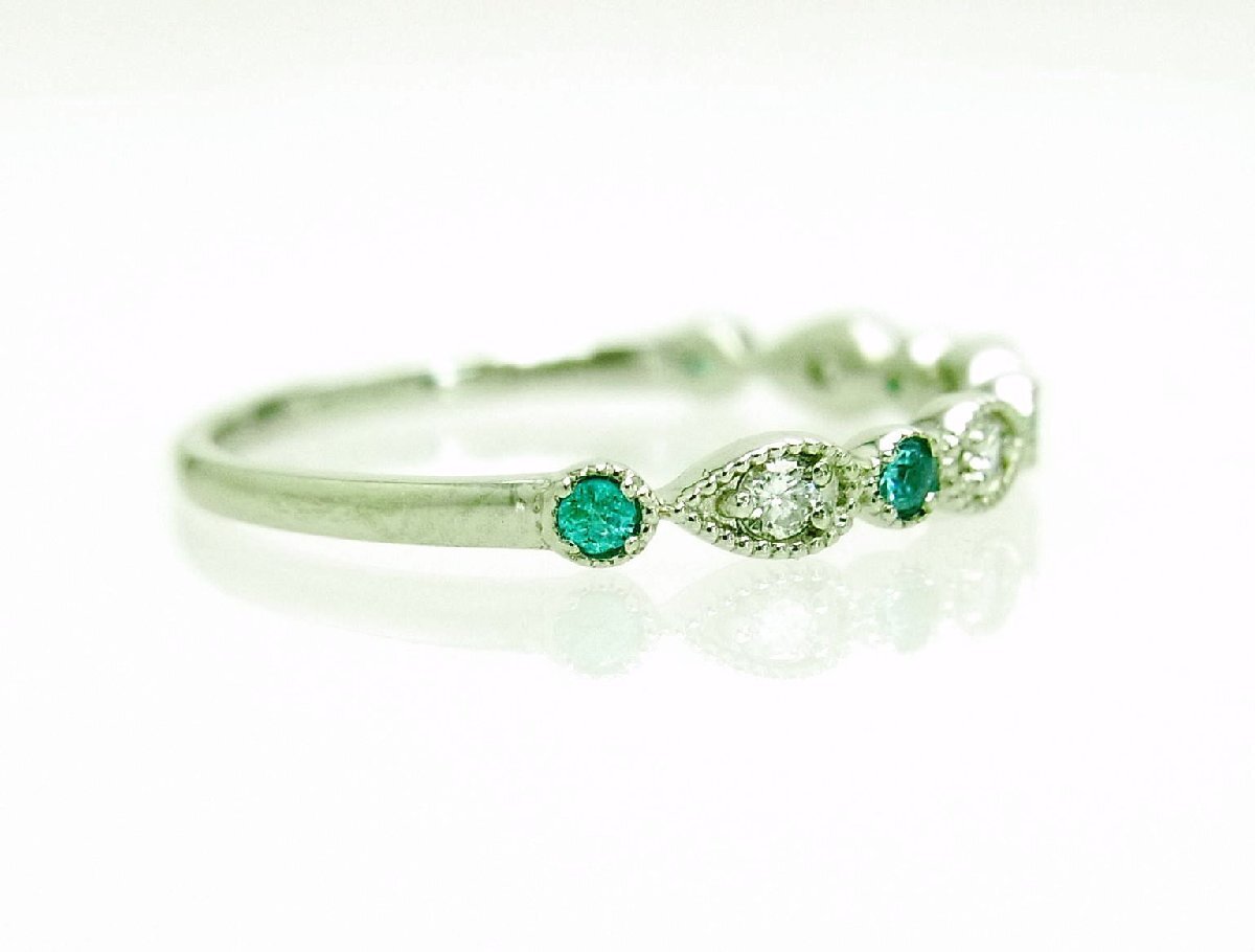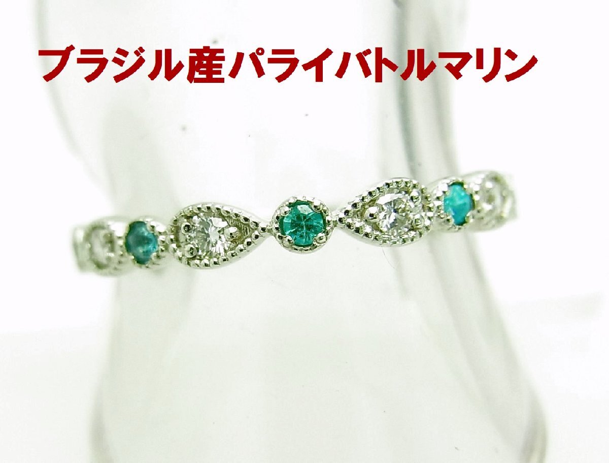 パライバトルマリンとダイヤモンドが交互に入ったエタニティリングです。