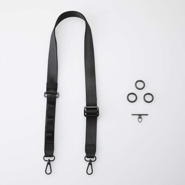 | ●ベルト幅が30mmと太めで、ワイヤレスイヤホンや鍵といった アクセサリを取り付けても肩が痛くなりにくく長時間のお出かけでも使いやすい | |