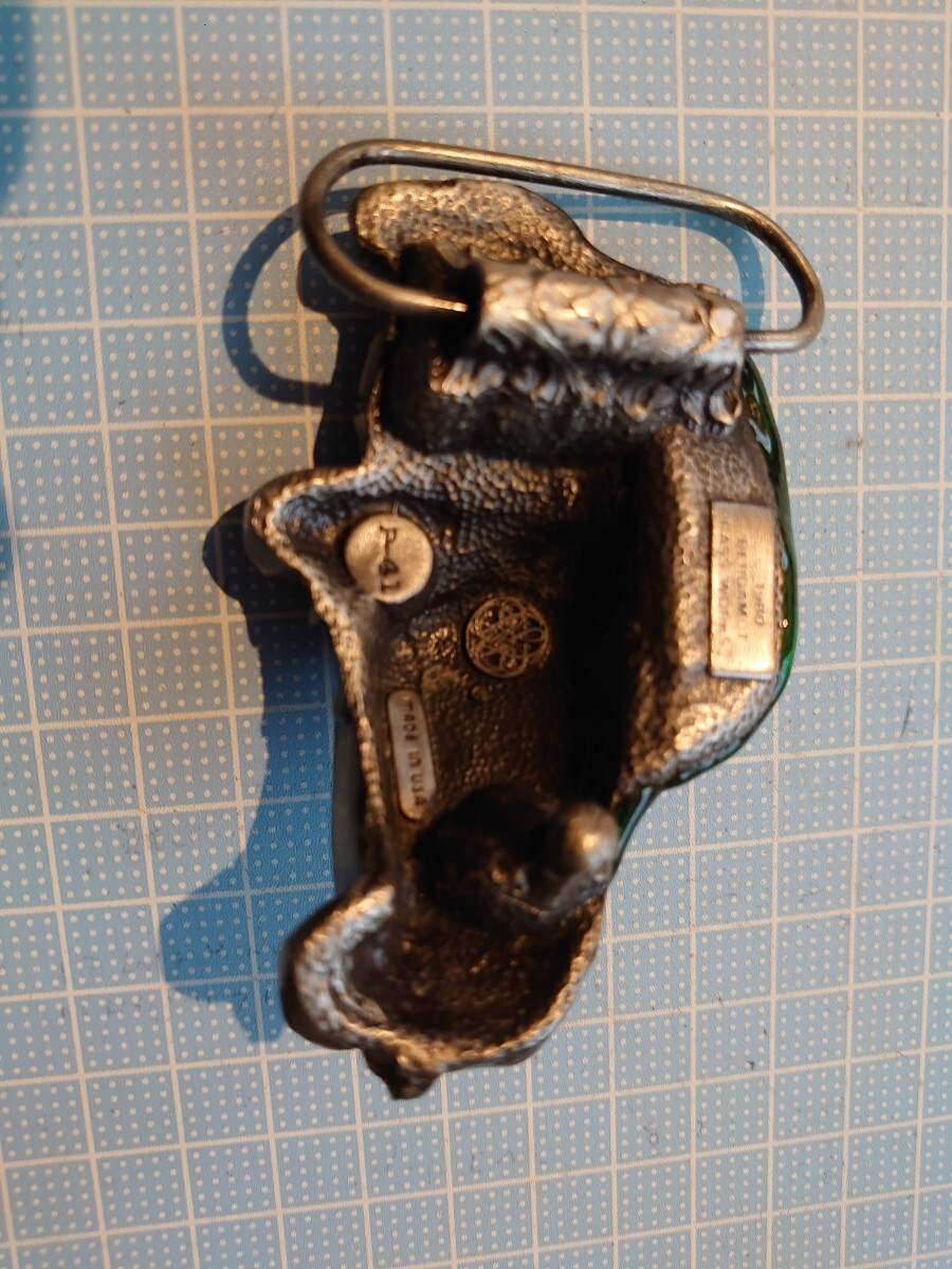 素晴らしい本場米国製ベルトバックルです。未使用品でがかなり古いものでそれなりの小傷などがございます。色は写真が実物と異なって見える場合もあるようです。こちらは銀色系のベースです。苦情返品なしでお願いいたします。ベルト巾48ミリくらいまでです。216gほど。