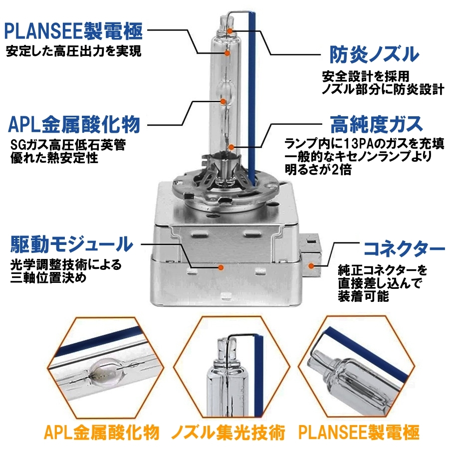 | HID(キセノン)ヘッドライトバルブ ロービーム (純正バルブ置き換えタイプ) 左右2個セット | |||