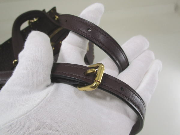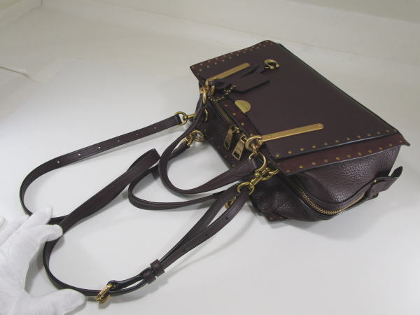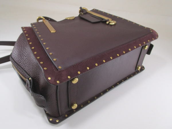 | コメント | バッファローレザー、スムースレザー、スエードを使用したバッグにリベットで装飾したエレガントなデザインです。前後にポケット1ずつ、内側にポケット2です。 小傷、小さな汚れ、多少の型崩れはございますがほぼ新品のきれいな商品です。 |