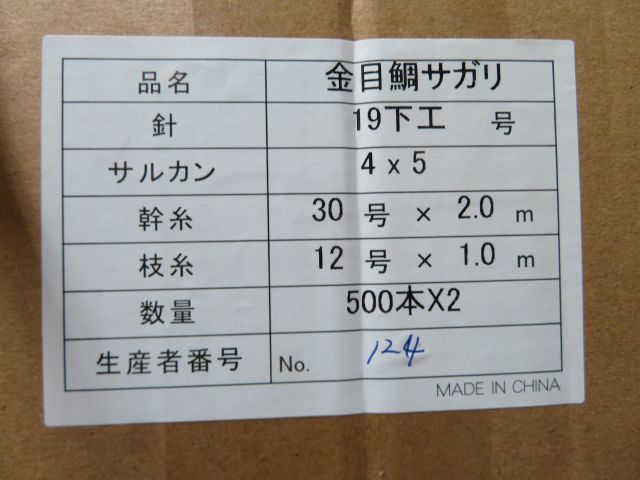 | キンメさがり1000本(500本×2)連結 サルカン付き 幹30号2.0m-枝12号1.0m です。 スペック 針:ムツ19号 幹糸:30号 2.0m ハリス:12号 1.0m サルカン:4×5 発送は未開墾の物を送ります。 ノークレーム、ノーリターンでお願いいたします。 写真の物がすべてです。 神経質な方のご入札はご遠慮下さい。 |